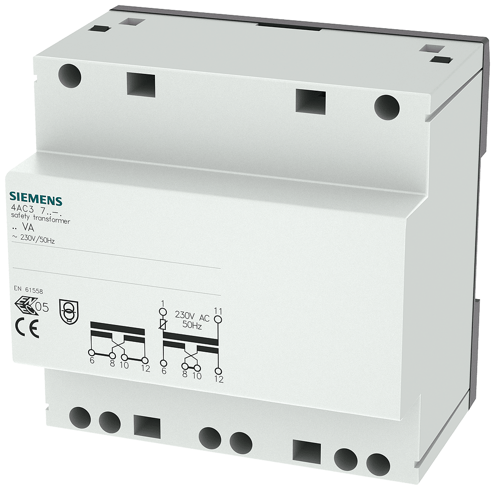 SIEMENS - Trasformatore di sicurezza, 40 VA primario AC 230 V, 50 Hz, secondario 12 V, 16 V, 24 V, 32 V 4AC37401