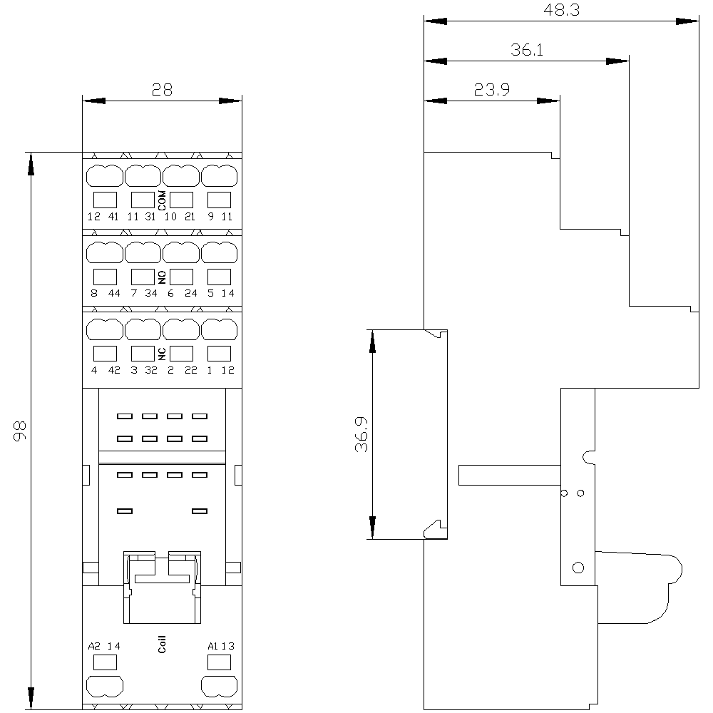 SIEMENS - Zoccolo da innesto per relè PT, 4CO, morsetti ad innesto (push-in) LZS:PT7874P
