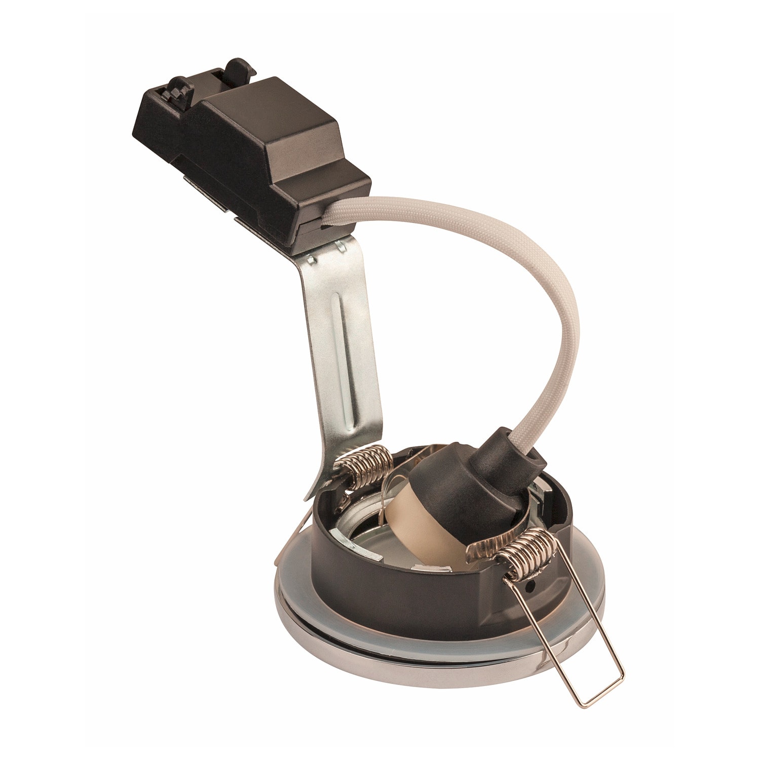 La ghiera da incasso a plafone ad alto voltaggio DOLIX OUT è realizzata in alluminio e dotata di un vetro per proteggerla dagli spruzzi d'acqua. Con la sua classe di protezione IP44 è utilizzabile in aree esterne o in ambienti umidi. Grazie all'attacco GU10 ad alto voltaggio la ghiera da incasso a plafone DOLIX OUT è pronta per la connessione diretta alla tensione di rete 230V.