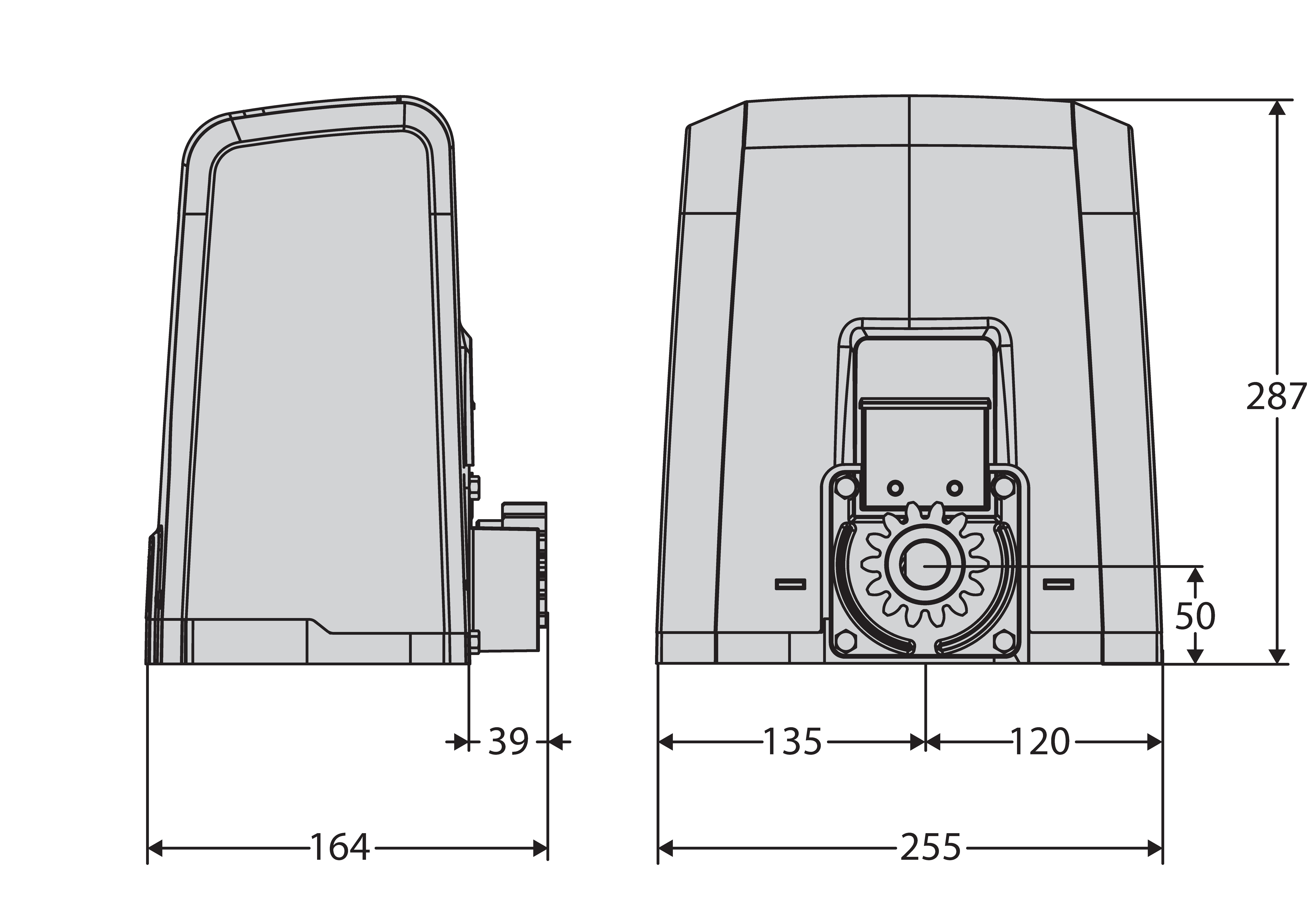 Kit completo 24 V per cancelli scorrevoli fino a 400 kg di peso. Velocità anta 12 m/min.