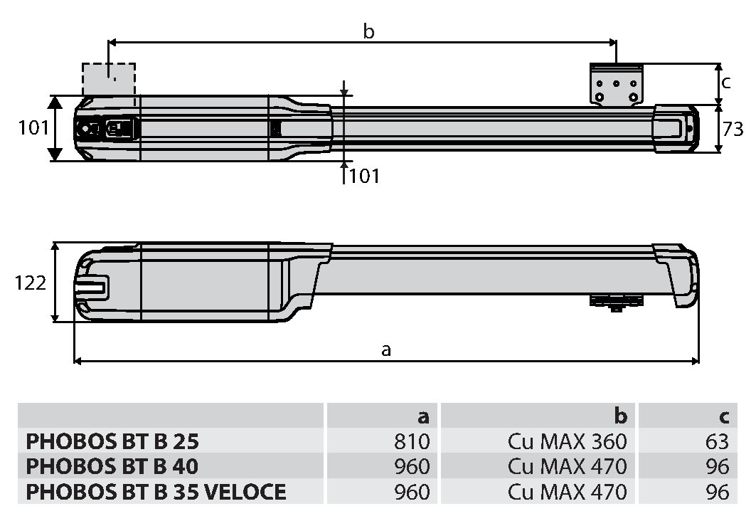Operatore irreversibile elettromeccanico 24 V per cancelli a battente fino a 700 kg di peso e 4 m di lunghezza.