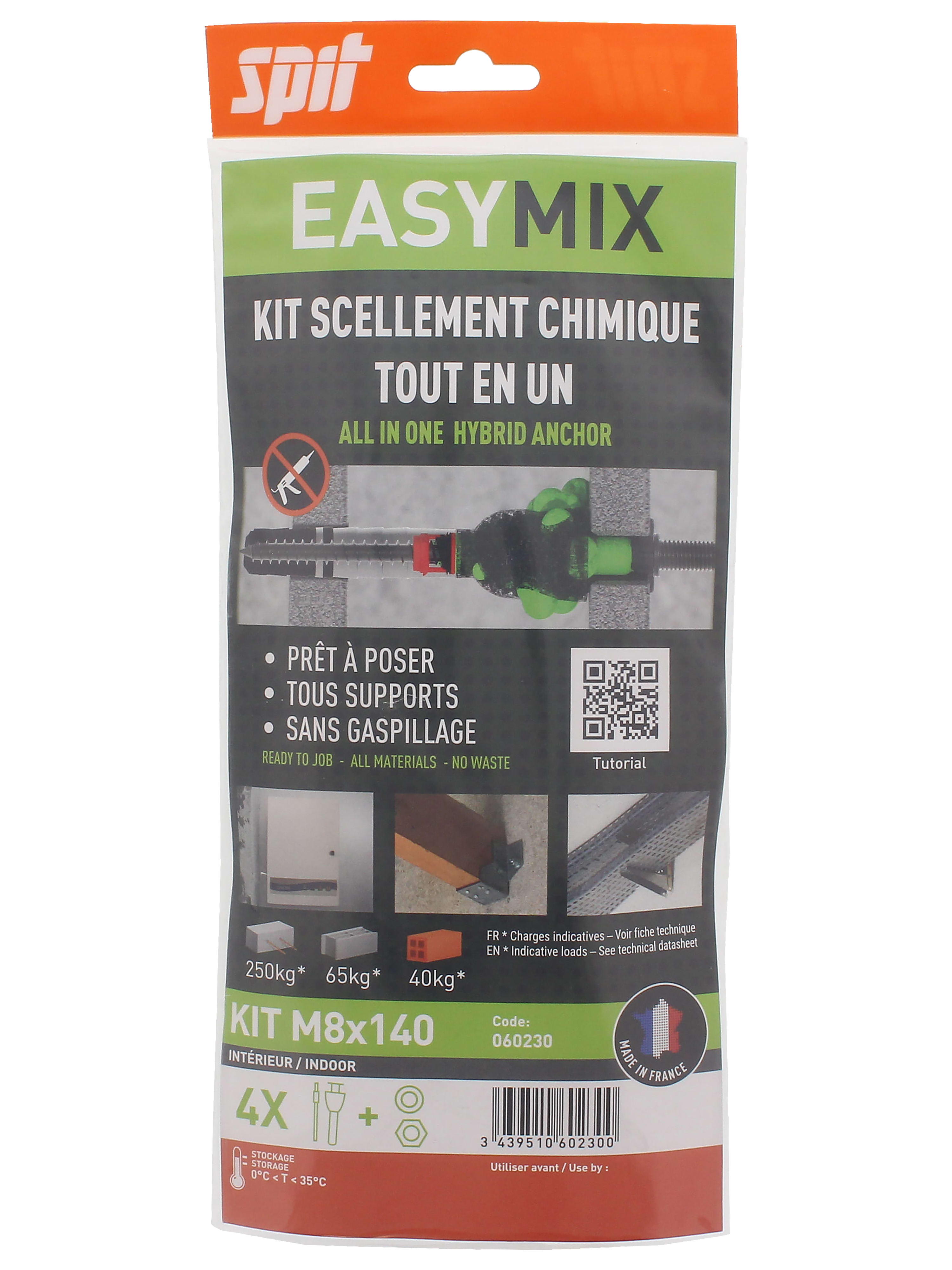 Kit monodose, vinilestere, bicomponente. Per fissaggi su muratura piena e forata.. In soli 3 passaggi il fissaggio è terminato, rendendolo estremamente semplice e fino a 5 volte più veloce di un chimico tradizionale: 1) Fora 2) Avvita 3) Fissa . Ogni Kit contiene: 4 ancoranti + 4 barre + 4 dadi + 4 rondelle. Non servono altri accessori o la pistola per l'erogazione . Le due versioni M8 e M10 sono adatte per installazioni indoor: Caldaia da muro, Corrimani, Staffe, Mensole e sospensioni, Portoni sezionali (basculanti), Quadri elettrici, Sanitari. La versione M10 con vite con rivestimento zinco-lamellare per installazioni outdoor: Canaline esterne, Staffe per condizionatori, Parabole, Segnaletica, Illuminazione esterna, Supporti per tubazioni e condotte esterne. Caldaia da muro. Corrimani. Staffe. Mensole e sospensioni. Portoni sezionali (basculanti). Quadri elettrici. Sanitari. Canaline esterne. Staffe per condizionatori. Parabole. Segnaletica. Illuminazione esterna. Supporti per tubazioni e condotte esterne.