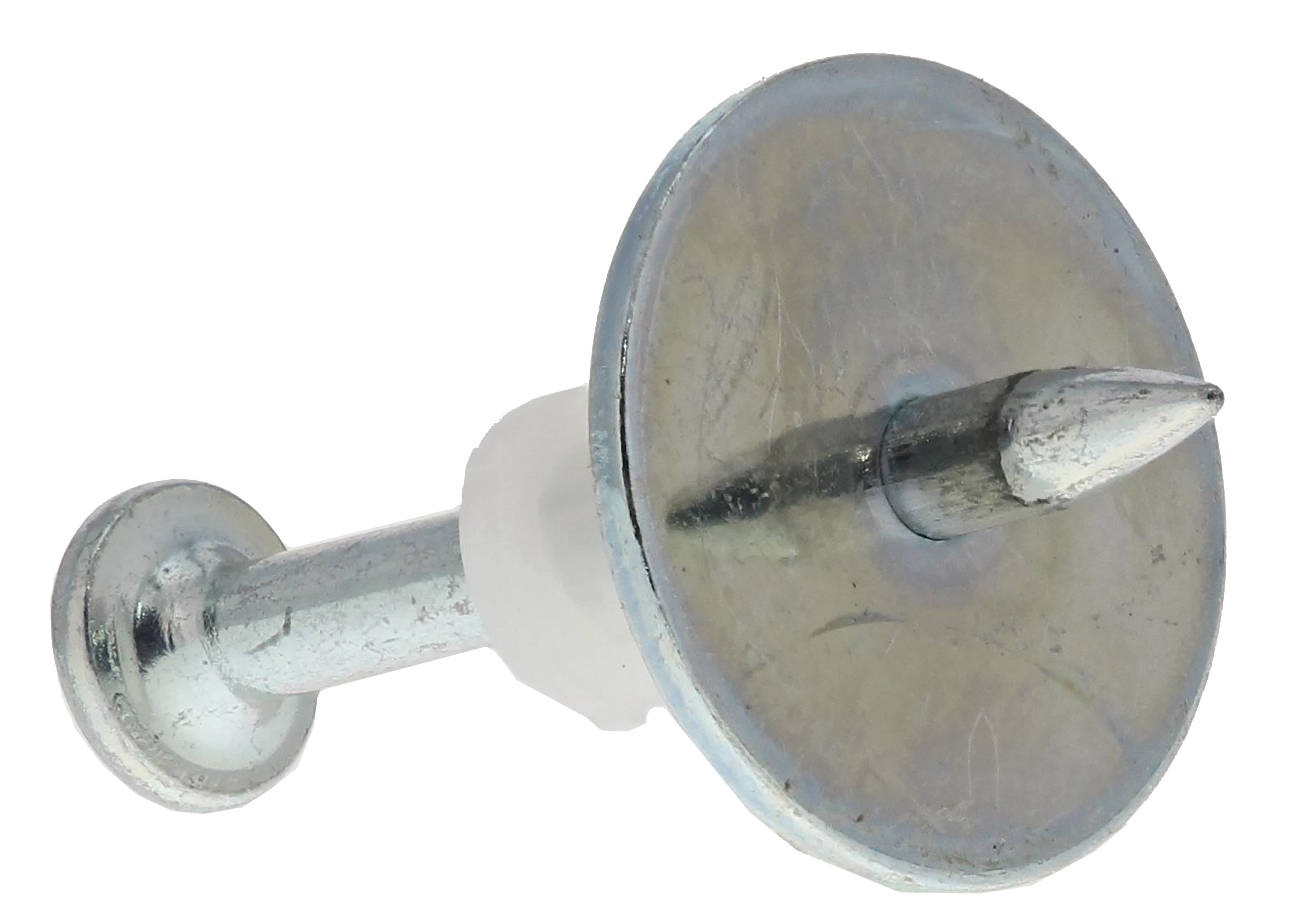 Chiodo singolo con rondella in acciaio da 21,75 mm e guida-chiodo in plastica, per impermeabilizzazione NATM. Il miglior chiodo per P370, in combinazione con le rondelle in PVC, per applicazioni in galleria.