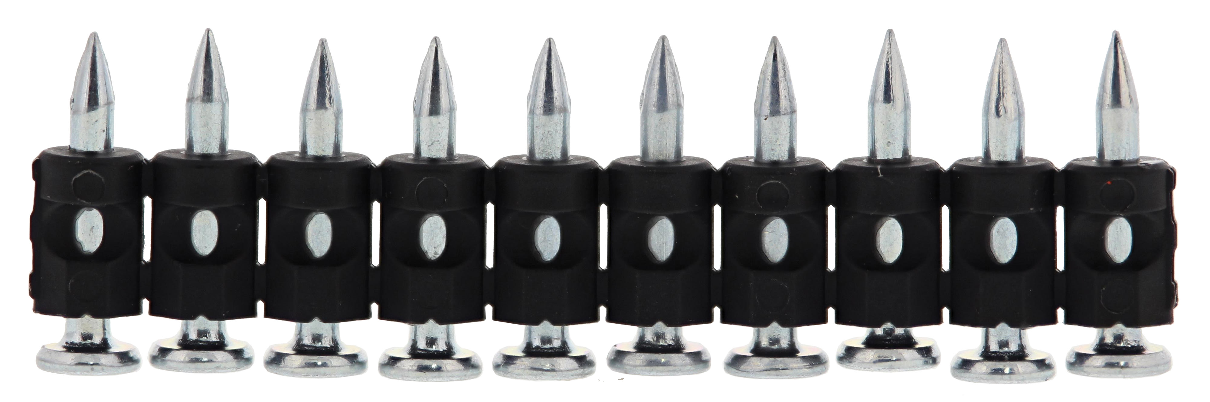 Chiodi per calcestruzzo di resistenza medio-bassa e materiali teneri. Confezionati con bombolette di gas.. Chiodi multiuso di qualità standard.