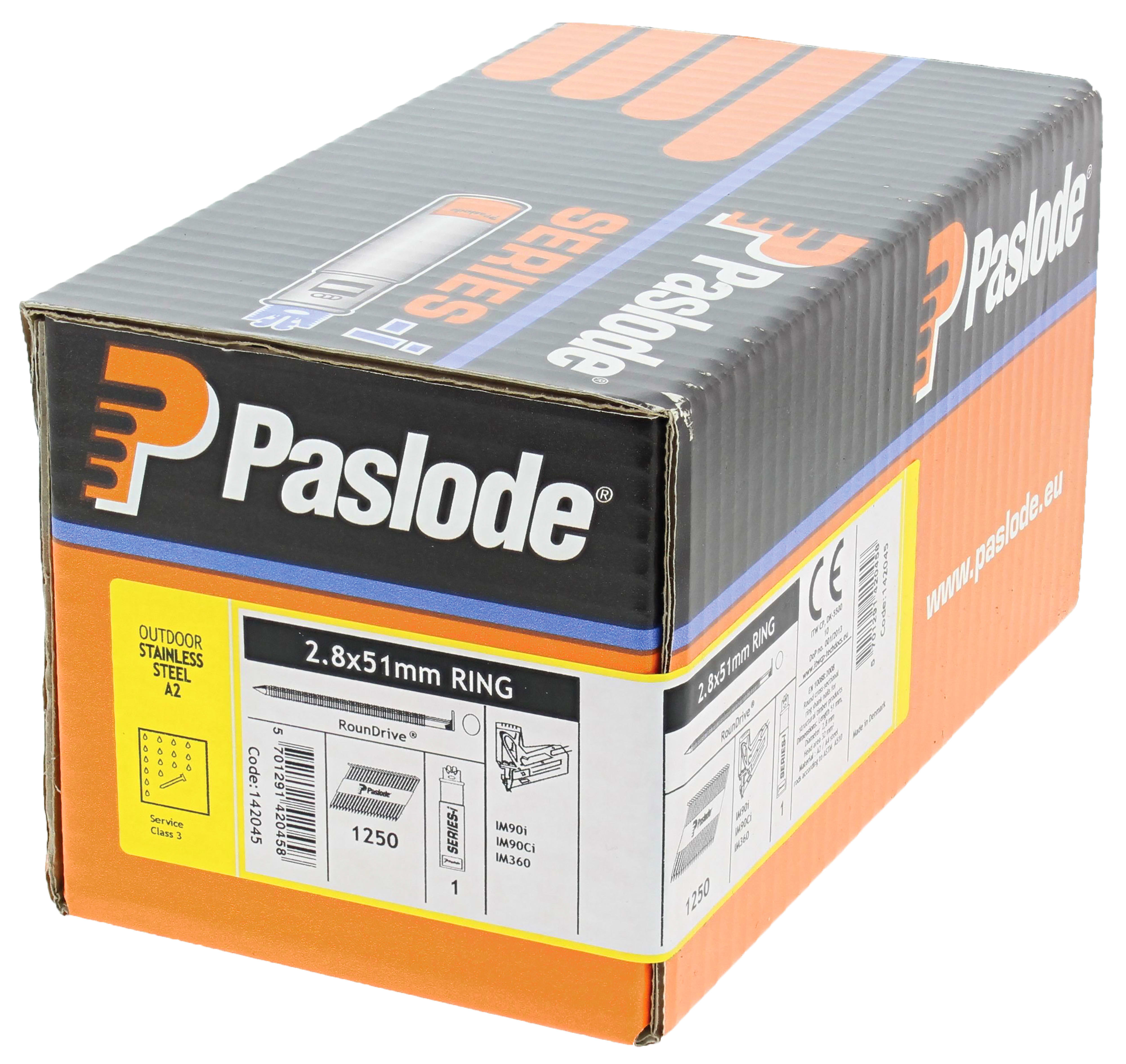 Per esterno, Classe di Servizio 3. Chiodi perfetti, per chiodatura di qualità eccellente e finitura impeccabile. Chiodi con speciale rivestimento che facilita la penetrazione. Le finiture anticorrosione per le classi di servizio 1, 2 e 3 rispondono a tutte le applicazioni. Chiodi e materiali di consumo Paslode offrono il miglior livello qualitativo del mercato. La più ampia gamma in Europa: Paslode offre i chiodi ideali per ogni applicazione. I chiodi Paslode sono marcati CE e sono quindi qualificati per la progettazione delle unioni secondo Eurocodice 5. La testa lenticolare è ideale per la applicazioni esterne.