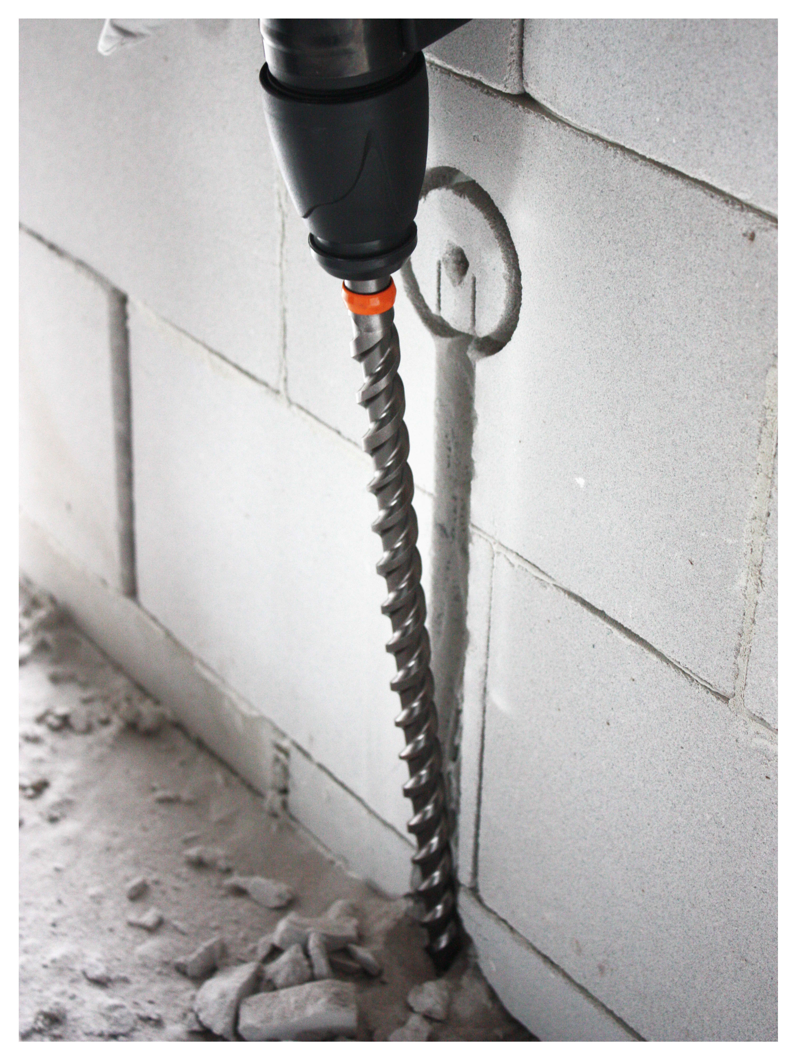 Punta multi-tagliente SDS MAX, per calcestruzzo. Grande diametro. Ampie luci di passaggio nella testa e nell'elica, per massimizzare l'estrazione dei detriti. Una tagliente centrale e due taglienti laterali per massimizzare la velocità. Doppio profilo di centratura per una maggiore precisione. Indicatore d'usura sulla testa e sull'elica. Perforazione e scalpellatura.