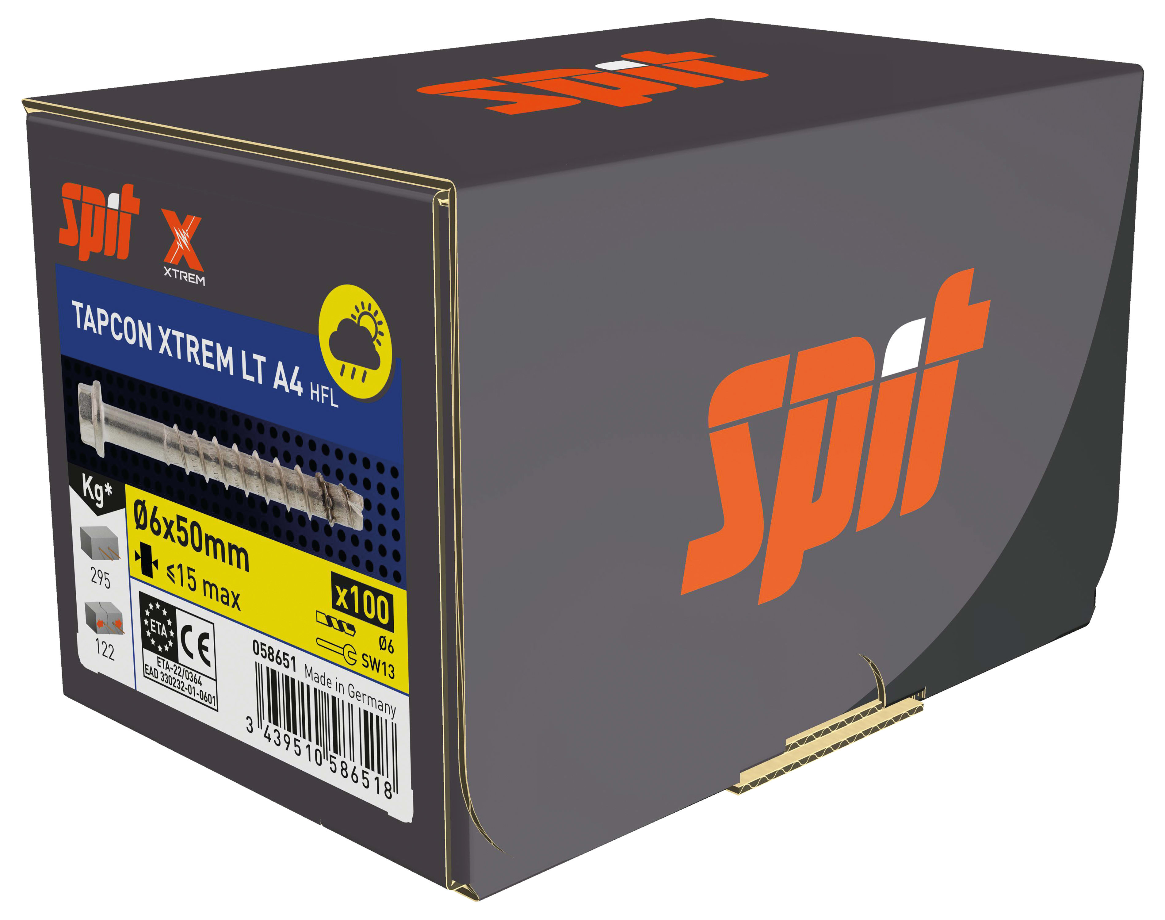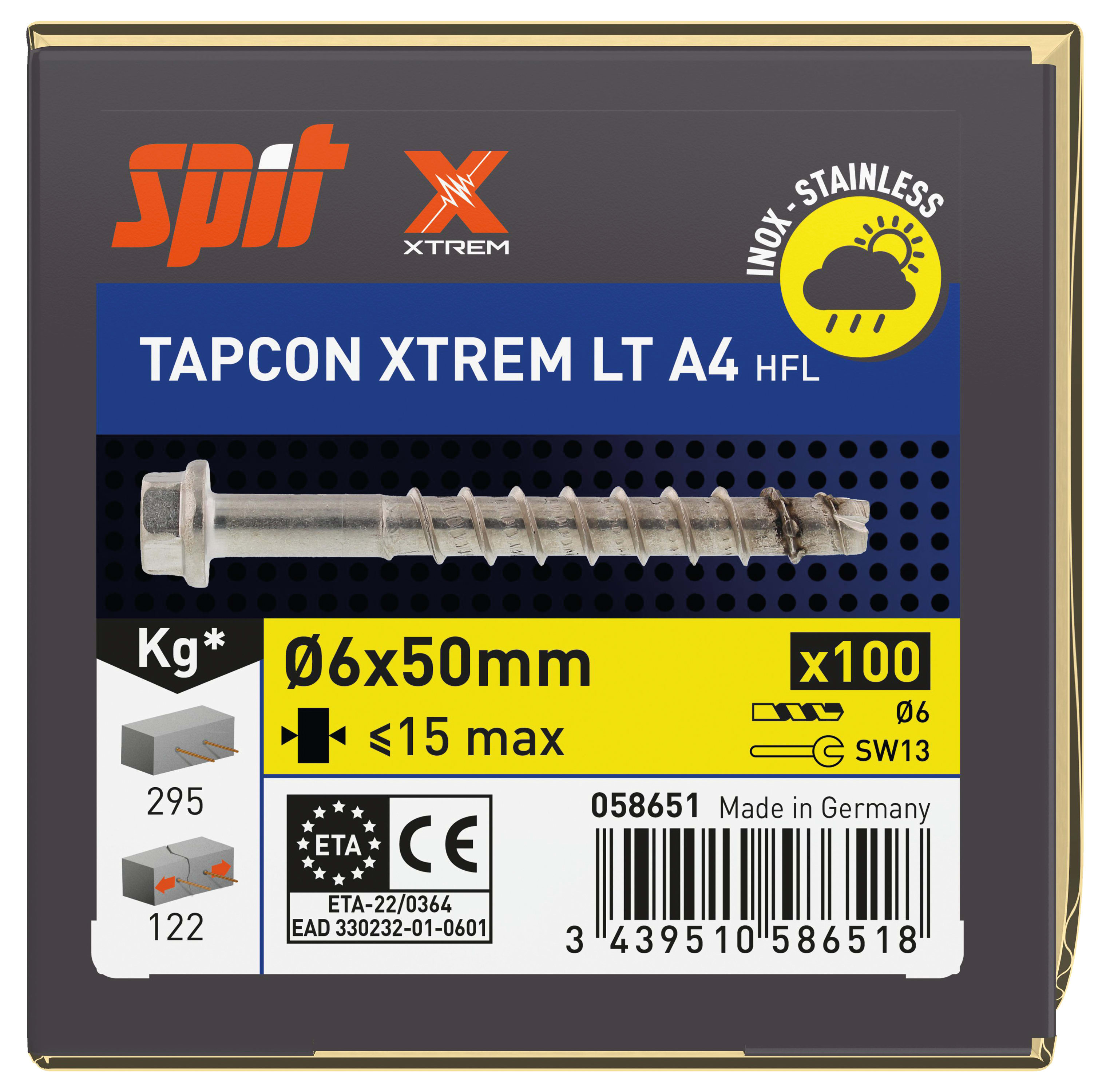 Ancorante a vite in acciaio inox per calcestruzzo per fissaggi ad alte prestazioni per distanze ed interassi ridotti e in zona sismica. Testa esagonale flangiata. Ancorante per calcestruzzo ad alte prestazioni, qualificato con ETA per Prestazione Sismica. Gamma con ETA, approvata per calcestruzzo fessurato e non-fessurato. Gamma TAPCON XTREM, utilizzabile e approvata per prestazione sismica C1. Certificato per la resistenza al fuoco. La maggior lunghezza effettiva della filettatura permette le prestazioni più alte del mercato. Disponibile in acciaio trattato con zincatura resistente a 500 h alla prova in nebbia salina o in acciaio inossidabile A4. Le viti TAPCON possono essere rapidamente rimosse e sono ideale per fissaggi temporanei. Ampia scelta di diametri di foratura, tipologie di testa e lunghezze per diverse necessità applicative. Canalizzazioni elettriche. Canali o tubazioni sospese. Puntelli per casseforme in acciaio. Controsoffitti sospesi. Fissaggi temporanei di cantiere. Ponteggi sospesi. Segnaletica stradale. Barriere di sicurezza. Sediolini da stadio. Scafflature industriali. Impianti ed apparecchiature. Canalizzazioni metalliche. Telai di serramenti. Ringhiere. Impianti di ventilazione/condizionamento.