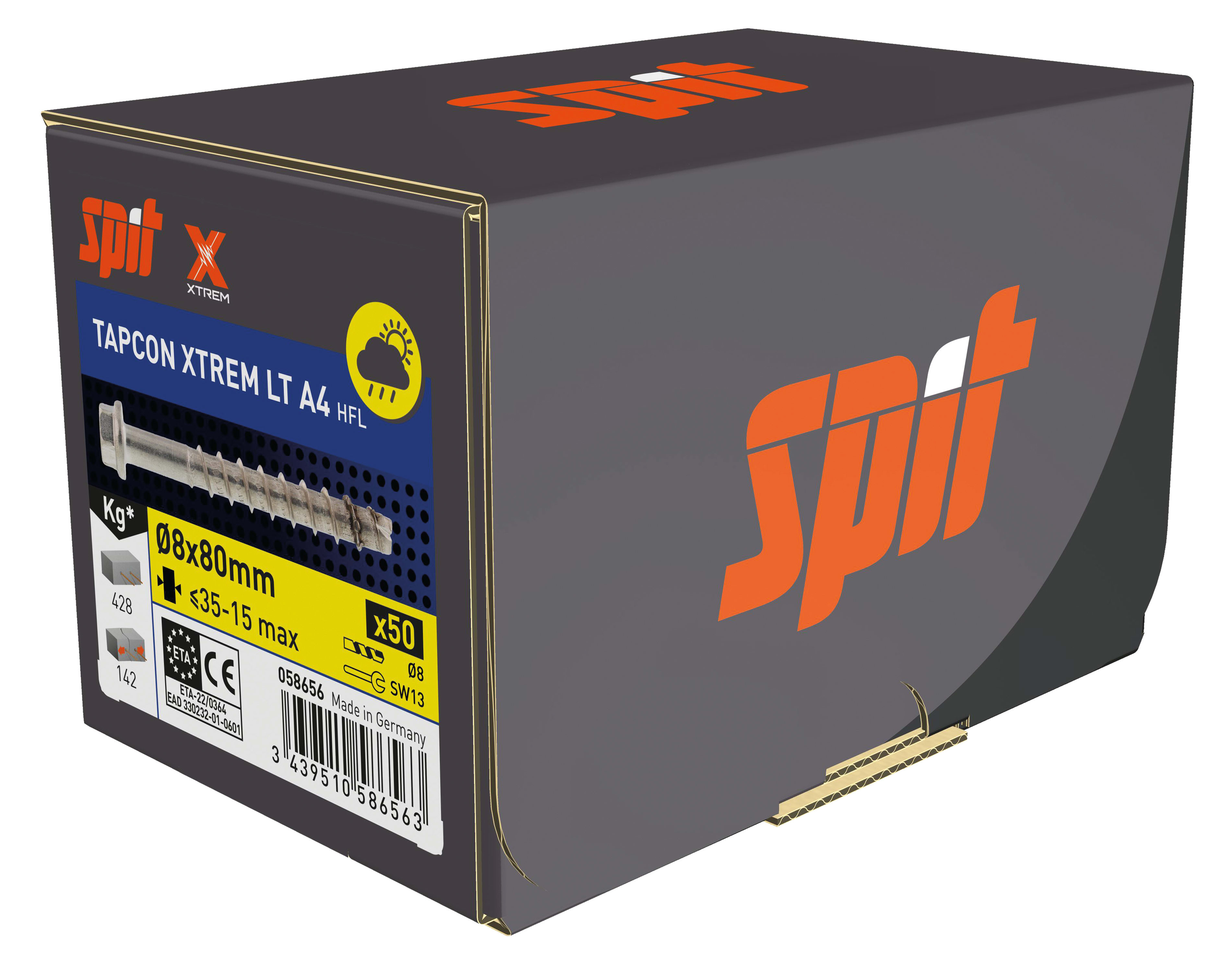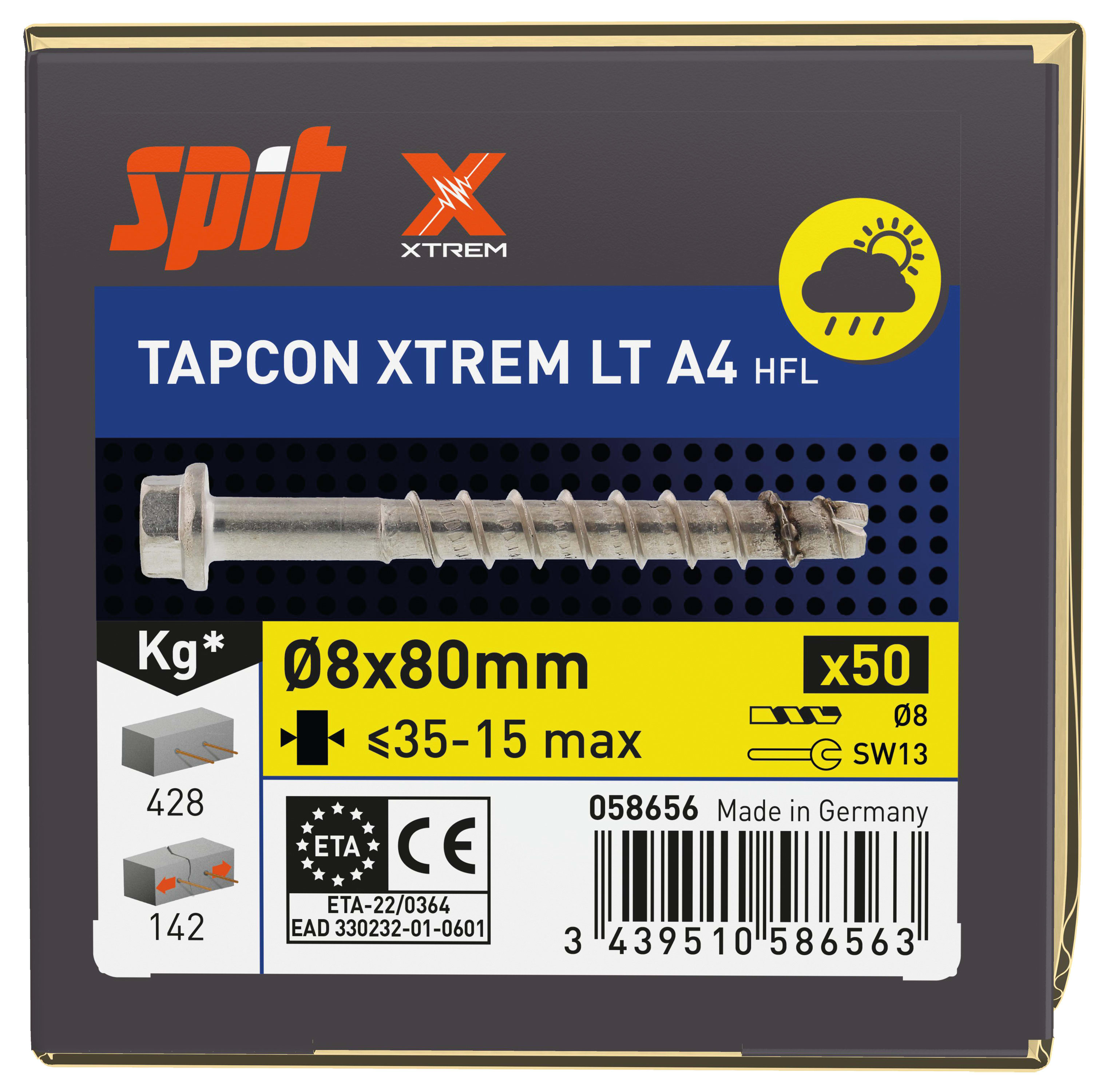 Ancorante a vite in acciaio inox per calcestruzzo per fissaggi ad alte prestazioni per distanze ed interassi ridotti e in zona sismica. Testa esagonale flangiata. Ancorante per calcestruzzo ad alte prestazioni, qualificato con ETA per Prestazione Sismica. Gamma con ETA, approvata per calcestruzzo fessurato e non-fessurato. Gamma TAPCON XTREM, utilizzabile e approvata per prestazione sismica C1. Certificato per la resistenza al fuoco. La maggior lunghezza effettiva della filettatura permette le prestazioni più alte del mercato. Disponibile in acciaio trattato con zincatura resistente a 500 h alla prova in nebbia salina o in acciaio inossidabile A4. Le viti TAPCON possono essere rapidamente rimosse e sono ideale per fissaggi temporanei. Ampia scelta di diametri di foratura, tipologie di testa e lunghezze per diverse necessità applicative. Canalizzazioni elettriche. Canali o tubazioni sospese. Puntelli per casseforme in acciaio. Controsoffitti sospesi. Fissaggi temporanei di cantiere. Ponteggi sospesi. Segnaletica stradale. Barriere di sicurezza. Sediolini da stadio. Scafflature industriali. Impianti ed apparecchiature. Canalizzazioni metalliche. Telai di serramenti. Ringhiere. Impianti di ventilazione/condizionamento.