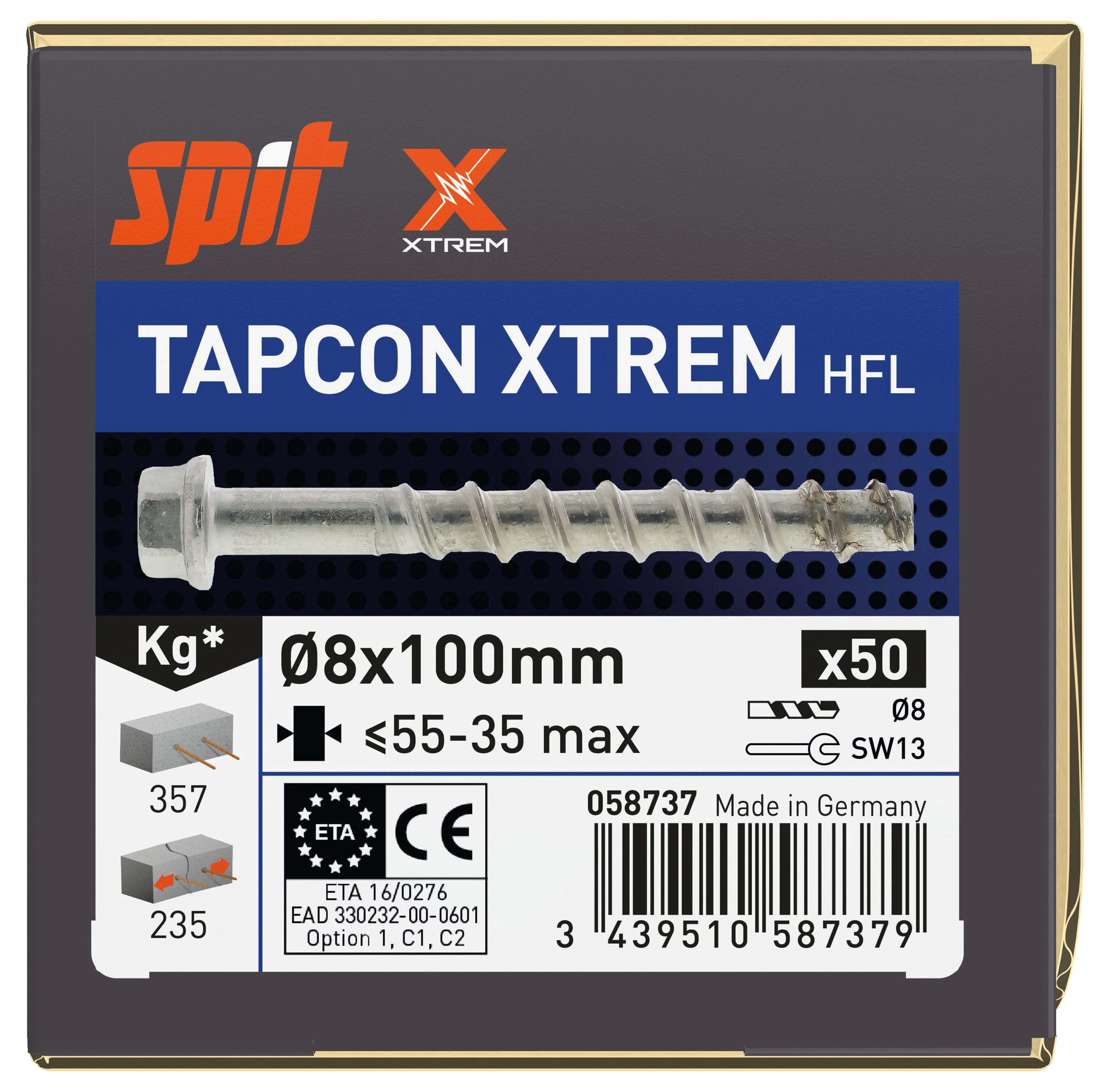 SPIT - VITE TAPCON HFL XTREM ACCIAIO 8x100/55-35 058737