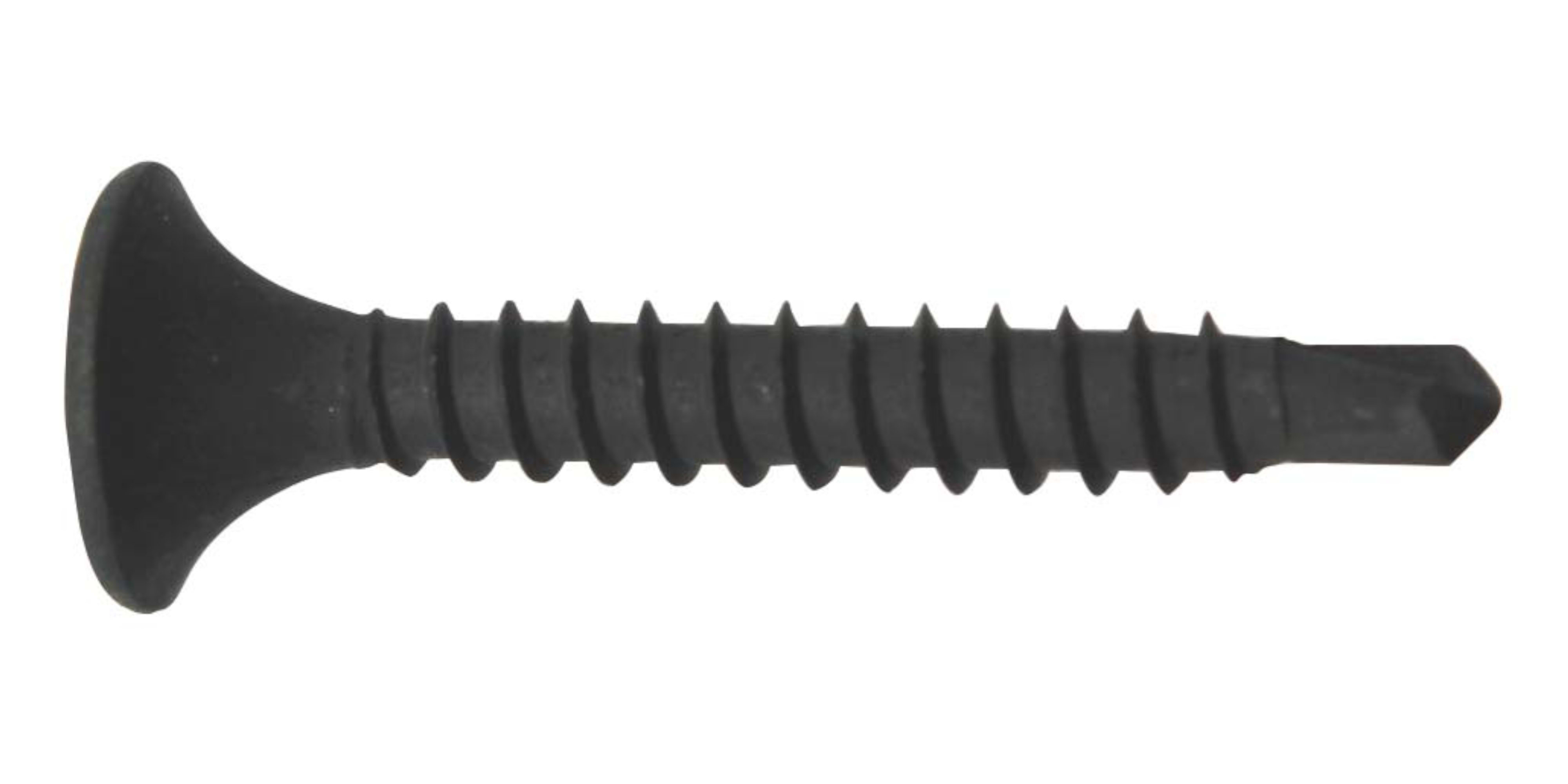 Vite con testa a trombetta, filetto singolo autofilettante, per gesso rivestito. Per gesso rivestito. Testa a trombetta, filetto singolo (autofilettante), punta Cutting J.. Punta Cutting J per acciaio spesso. Resistenza fino a 15⁰ di piegatura-sicurezza. Filetto a passo corto per avvitatura senza sforzo. Finitura grigia anticorrosione (Classe 48 H). Conforme direttiva sull'eliminazione delle sostanze tossiche (REACH). Fissaggio lastre in gesso rivestito su sotto-struttura metallica fino a 2,5 mm (f 3,5).
