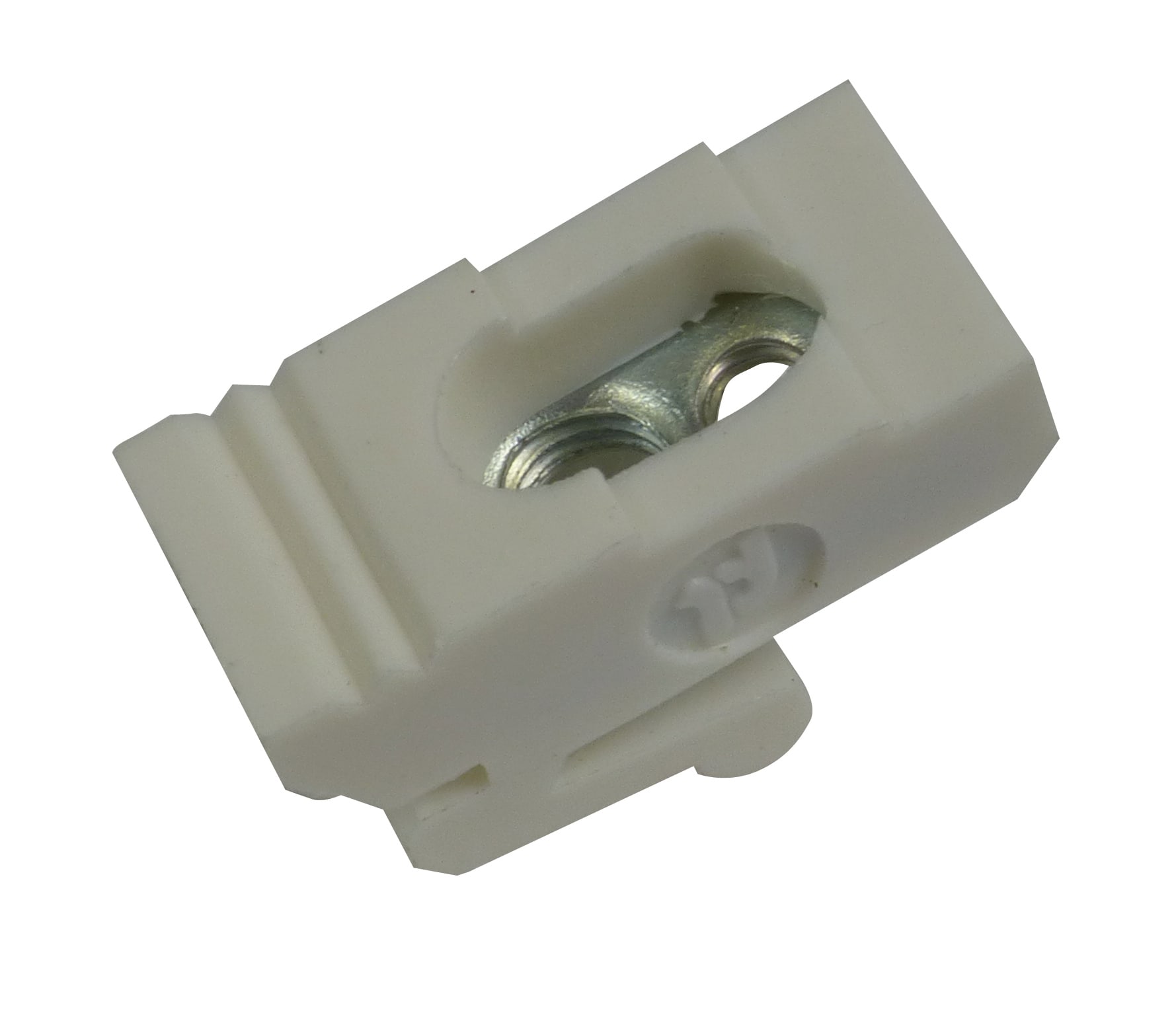 TEKNOMEGA - Clip per profilo asimmetrico in nylon PA66 x guida DIN con fori M4-M6. DIN1105