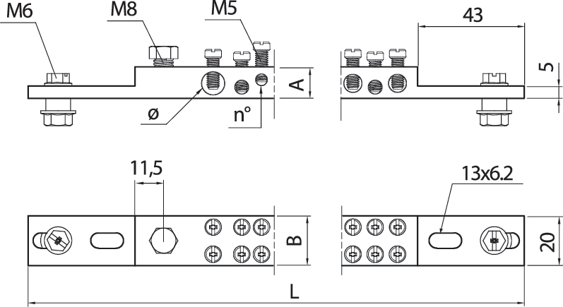 È anche possibile fissare le morsettiere direttamente su una barra di rame in corrispondenza di un morsetto, permettendo di sfruttare il resto della barra di rame per cavi di sezioni maggiori.