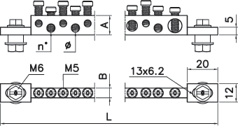 È anche possibile fissare le morsettiere direttamente su una barra di rame in corrispondenza di un morsetto, permettendo di sfruttare il resto della barra di rame per cavi di sezioni maggiori.
