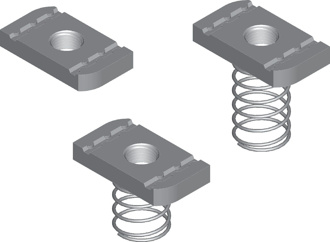 I dadi per profili sono di forma rettangolare e permettono un'installazione stabile e sicura all'interno delle guide dei profili. La loro forma evita la rotazione involontaria del dado all'interno del profilo, agevolando il serraggio.