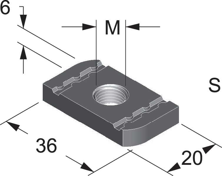 I dadi per profili sono di forma rettangolare e permettono un'installazione stabile e sicura all'interno delle guide dei profili. La loro forma evita la rotazione involontaria del dado all'interno del profilo, agevolando il serraggio.