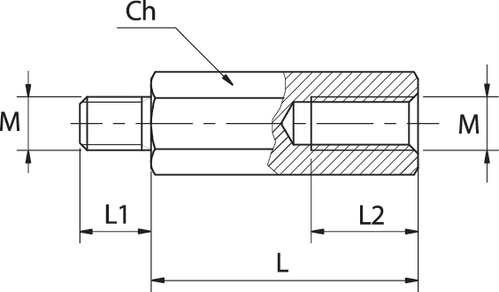 Profilo esagonale con filettature M - F (Maschio-Femmina) M3 - M4 - M5 - M6 - M8.