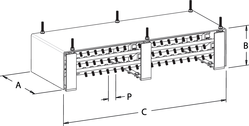 TEKNOMEGA - Kit ripartitore 630A con 17 uscite per fase M8. PSP1070