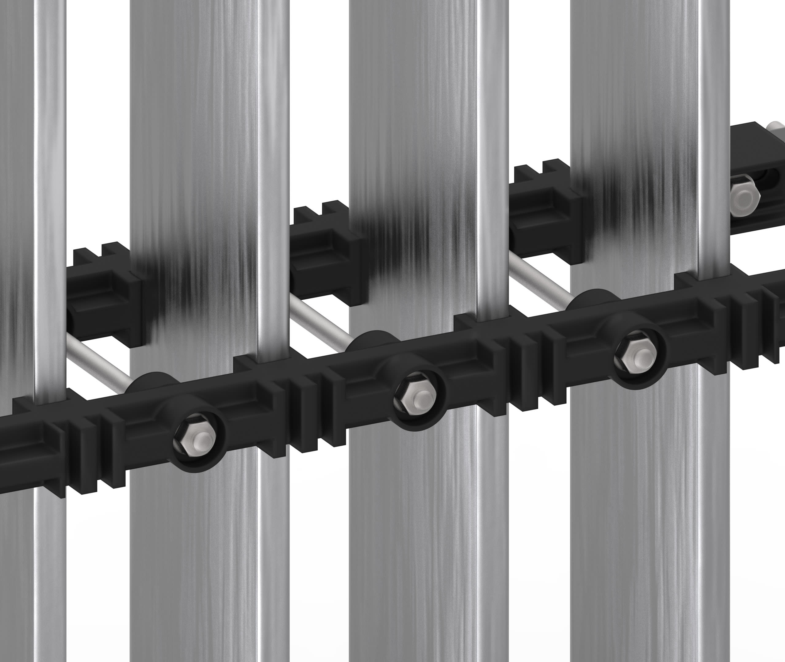 I portabarre TEKNOMEGA consentono di supportare in maniera efficace e conveniente tutte le distribuzioni in barra di rame e/o alluminio da realizzare all’interno di un armadio elettrico.