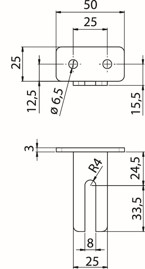 TEKNOMEGA - Staffa per fissaggio barra verticale 2 fori squadretta bus. TOP1105