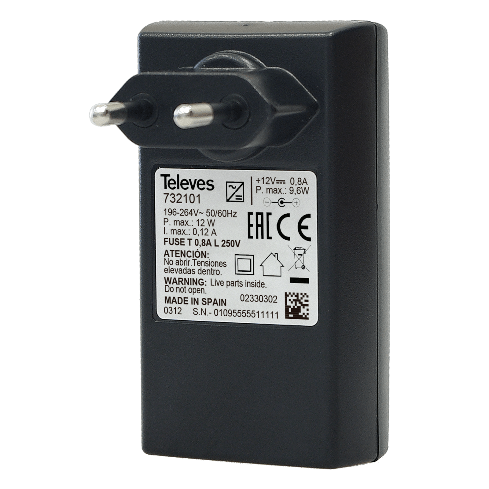 TELEVES - Alimentatore switching 12V 0,8A per uso domestico e industriale. 732101
