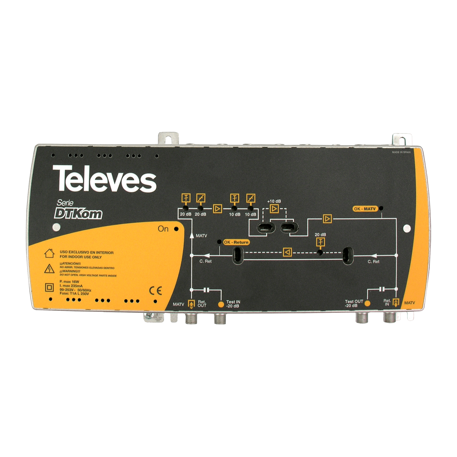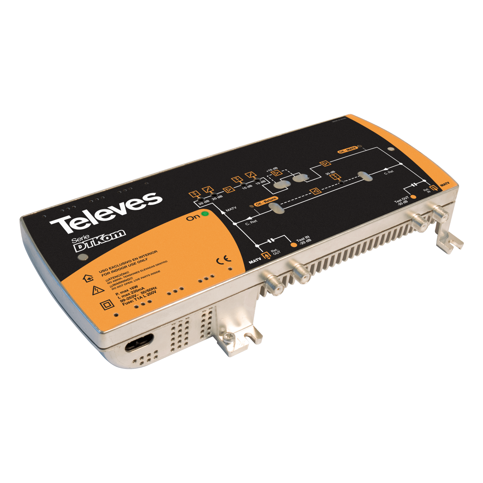 TELEVES - Amplicatore digitale DTKom con ritorno canale e MATV, 1 ingresso/1 uscita, 121/132 dB V, centrale larga banda DOCSIS con power doubling. 451203