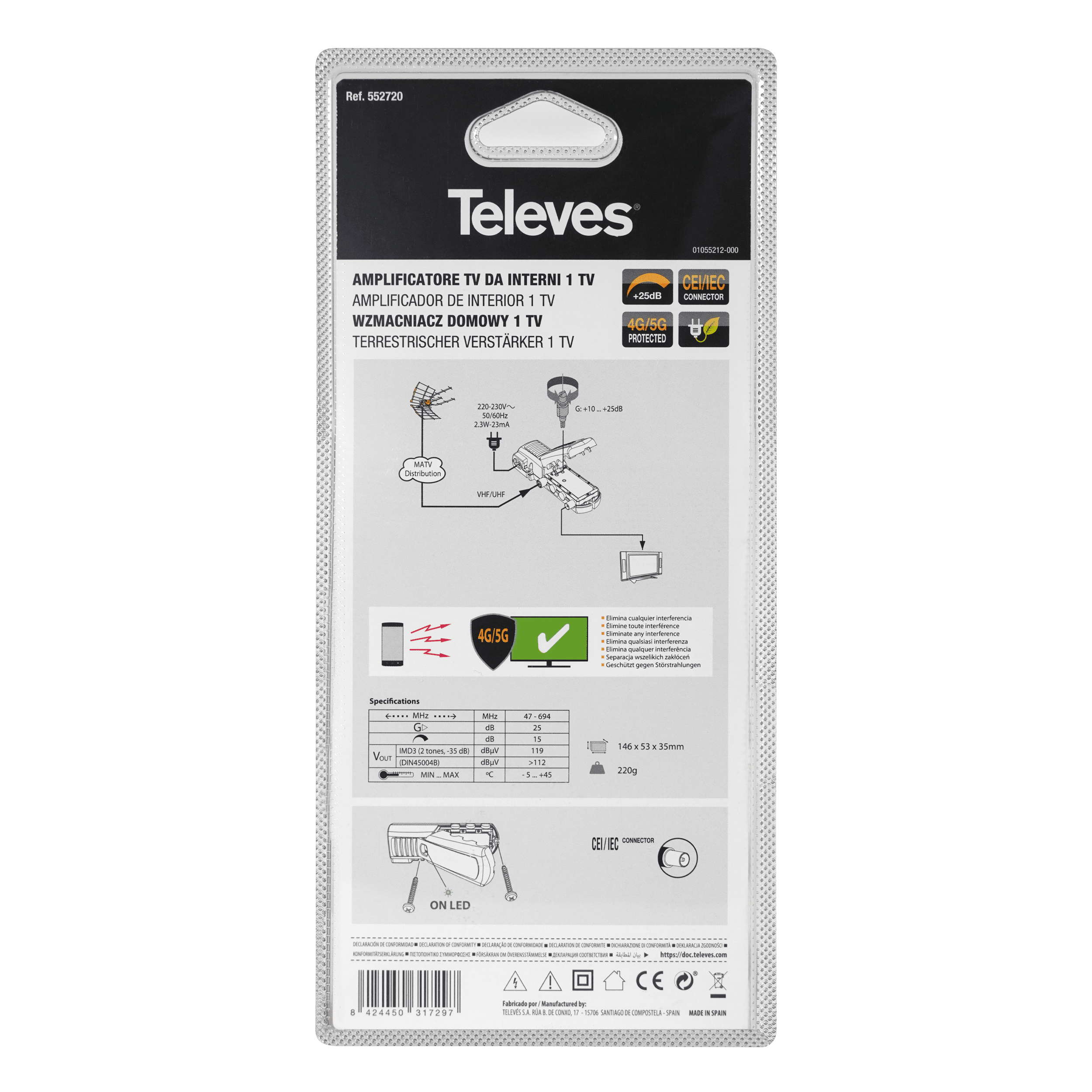 TELEVES - Amplificatore da interno IEC 1 uscita: VHF/UHF - LTE700 Ready 47..694MHz G25 VU112dBuV.