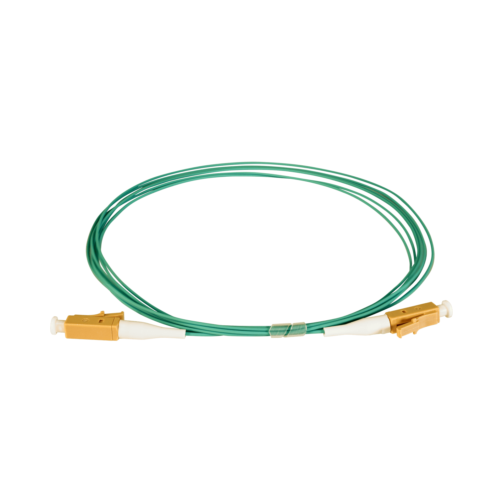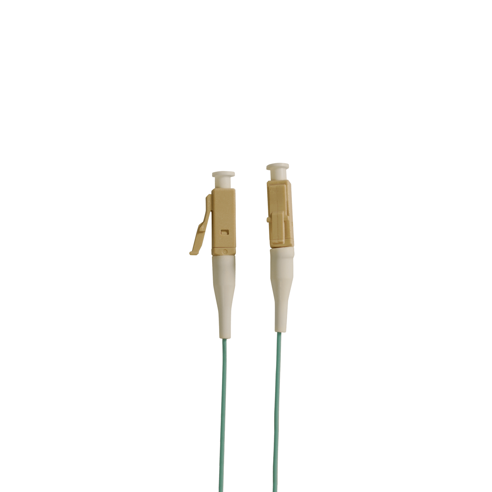 Bretella convertibile a pigtail LC/PC, multimodale (MM) OM3, LSFH da interno. Bretella in fibra ottica multimodale (MM) preconnettorizzata a entrambe le estremità mediante connettori LC/PC. È convertibile in Pigtail offrendo la versatilità di adattare la sua funzionalità in base alle necessità. Viene utilizzato come standard per l'interconnessione di apparecchiature ottiche. Inoltre, la bretella può essere tagliata a metà ottenendo due pigtail con un'unica estremità connettorizzata, questo permette la fusione dell'altra estremità contro un cavo in fibra non connettorizzato. La guaina da 900μm è di tipo LSFH ed è consigliata per l'uso interno. Ha entrambe le estremità con un connettore corto che ne facilita l'installazione nelle prese a muro, evitando incrementi di attenuazione dovuti a flessioni indesiderate. Inoltre, il connettore corto facilita lo scorrimento della brettella attraverso i condotti, riduce lo spazio necessario per il collegamento e il raggio di curvatura è meno impegnativo. . Tipo di fibra Multimodale OM3 ITU-T G.651.1. Guaina LSFH, colore blu acqua. Connettori LC/PC. Lunghezza 2m.