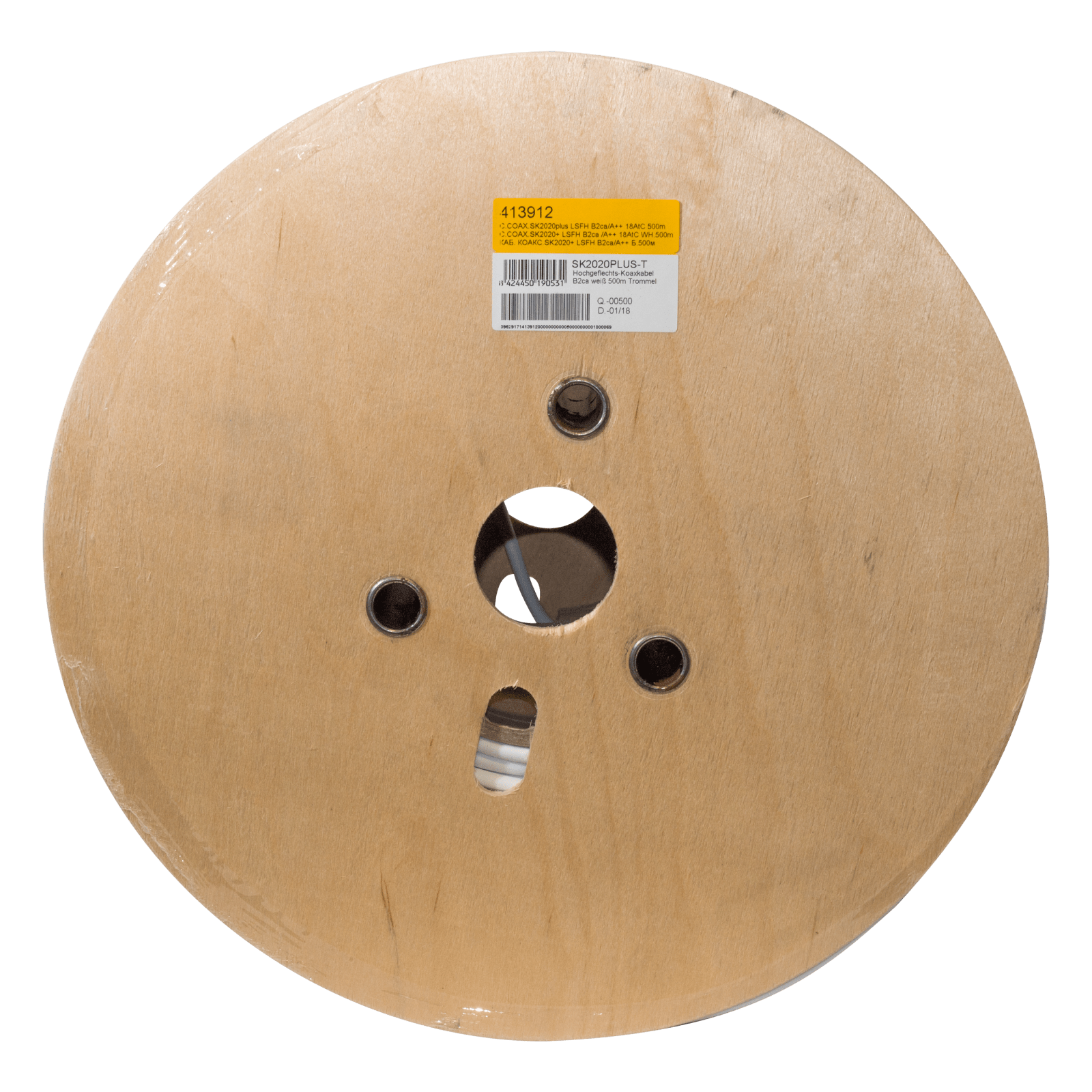 Cavo coassiale SK2020plus, 18AtC Euroclasse B2ca e schermatura classe A++. Cavo coassiale RG-6 con conduttore interno e treccia fabbricati in rame (Cu/Cu) con ottima copertura della treccia (82%). Tripla schermatura (TSH) perchè ha un secondo foglio aggiuntivo di schermatura. Un cavo 18AtC, con guaina LSFH (Low Smoke, Free of Halogen) resistente ai raggi UV. Tipo di bobina: Legno, Lunghezza: 500 m.. Conduttori fabbricati in rame. Schermatura in classe A++. Euroclasse B2ca-s1a,d1,a1: la più alta prestazione del regolamento CPR che lo rende unico per il suo multipli usi in: aeroporti, ospedali, scuole, edifici residenziali, etc.. Guaina esterna in LSFH, resistente UV, di colore bianco, consigliata per uso esterno su tetto. Impedenza caratteristica di 75 ohm. Disponibile su bobine di diverse lunghezze.