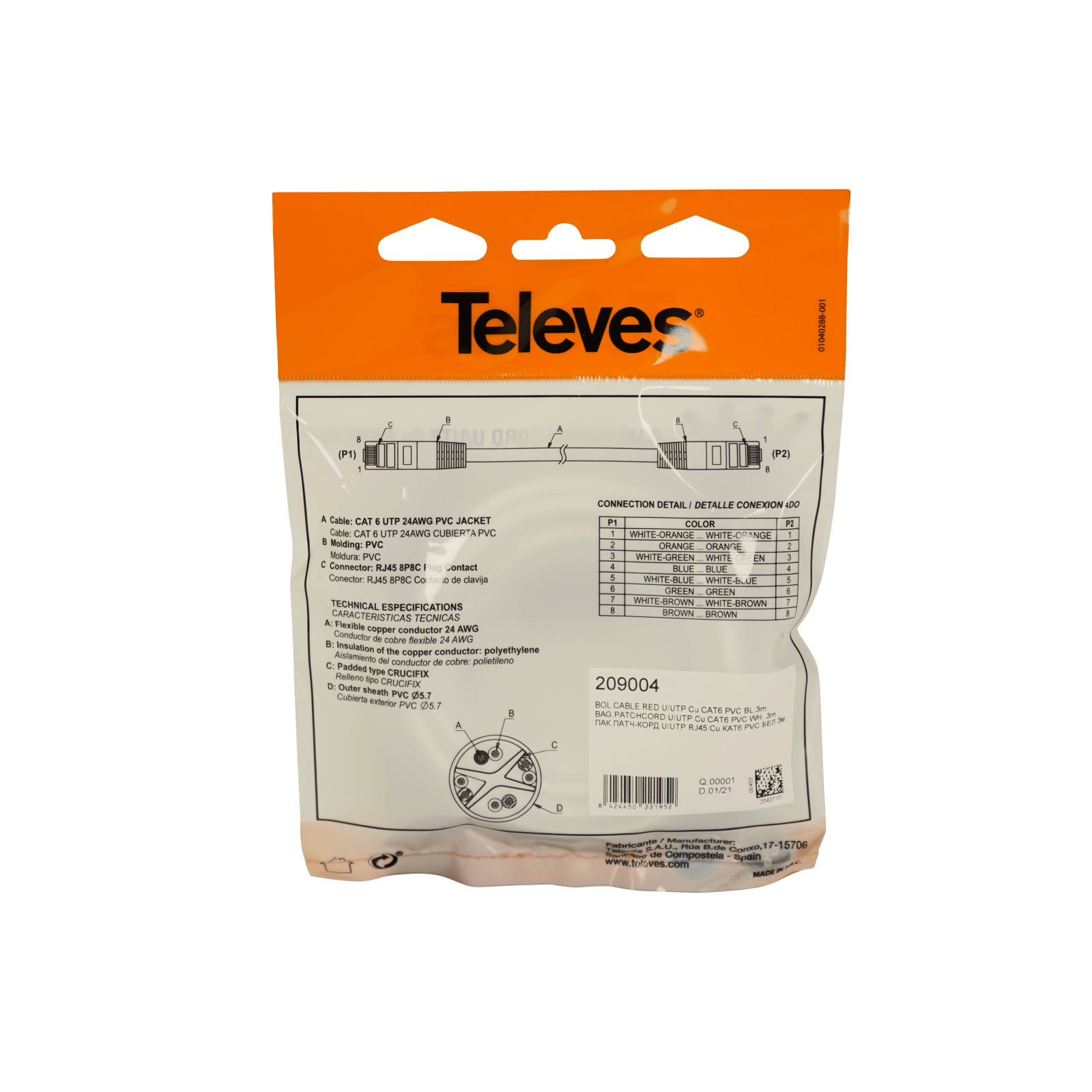 TELEVES - Cavo patch Ethernet Cat6 UTP in rame PVC bianco da 3 metri per installazione fai-da-te.