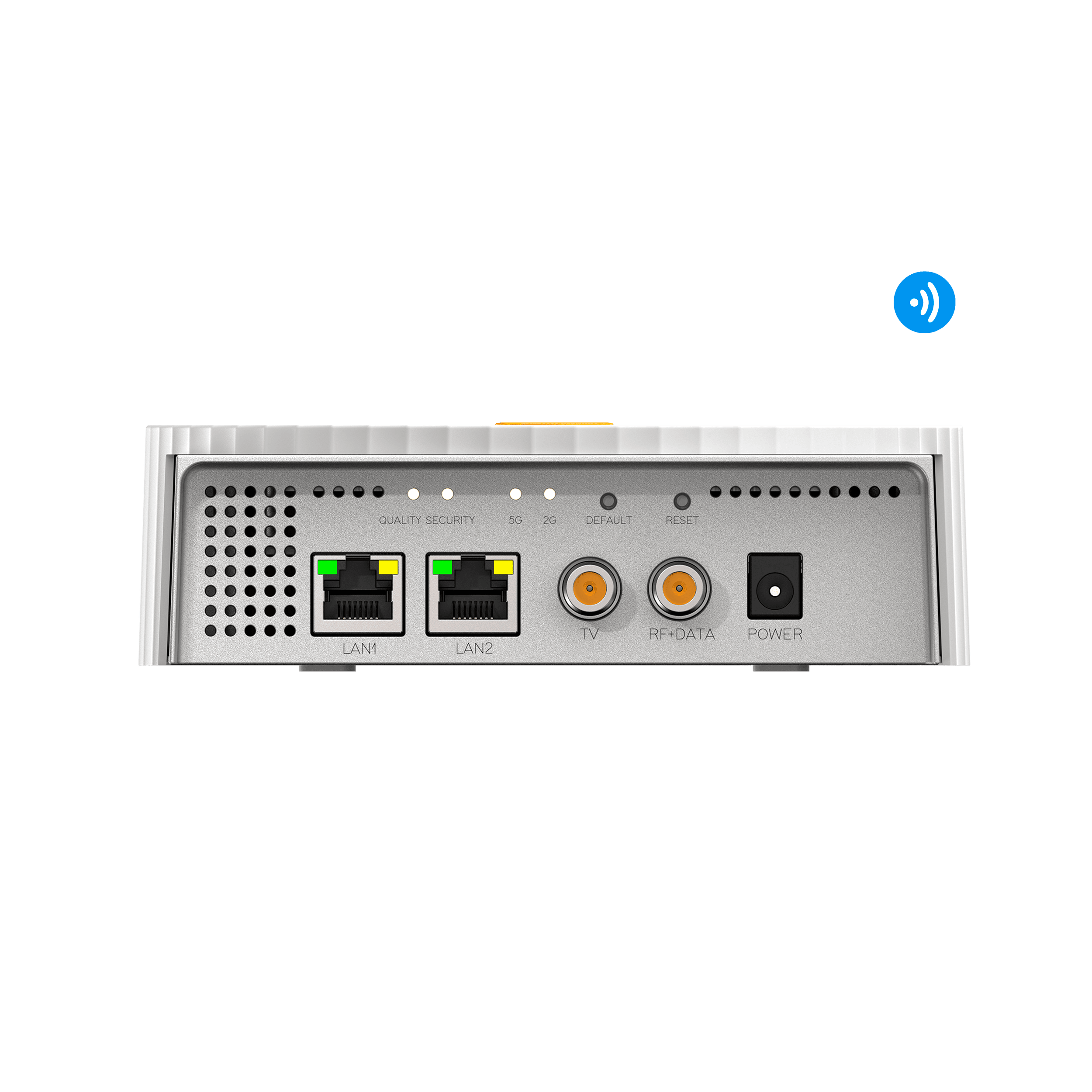 CoaxData G.hn Nodo G.hn 2xEthernet + WiFi. Dispositivo terminale dell'installazione CoaxData G.hn, responsabile di fornire un punto di connessione alla rete per gli utenti. Riceve il segnale inviato dal master tramite la rete coassiale e trasforma i servizi dati in Ethernet, mantenendo il servizio TV sulla presa coassiale.Questo nodo è dotato di interfacce AP WiFi ad alta efficienza per la connessione wireless degli utenti, operanti con standard a 2,4 GHz (802.11b/g/n) e 5 GHz (802.11ac). Grazie ai suoi metodi di crittografia avanzati, garantisce la protezione e la sicurezza delle connessioni wireless di ogni utente, soprattutto negli ambienti più esigenti. Inoltre, include due porte Ethernet (RJ45) fino a 1 Gbps ciascuna per connessioni cablate.In genere, viene installato nelle stanze della struttura per fornire servizi TV e Internet direttamente agli utenti. . Plug and play: non appena connesso alla rete coassiale, viene automaticamente riconosciuto e configurato dal master e inizia a lavorare. WiFi a doppia banda di frequenza: opera nella banda 2,4 GHz (802.11b/g/n) raggiungendo una velocità fino a 300 Mbps, e nella banda 5 GHz (802.11ac) con cui è in grado di fornire fino a 867 Mbps. Doppie antenne MU-MIMO 2x2 multi-utente: forniscono le massime prestazioni sia in trasmissione che in ricezione wireless, riducendo i tempi di attesa e velocizzando le connessioni per una migliore esperienza utente. Alimentatore UL 36 W incluso, con spine AC intercambiabili (UE, UK e Australia). Montaggio a parete o a terra. Indicatori LED di funzionamento del dispositivo.