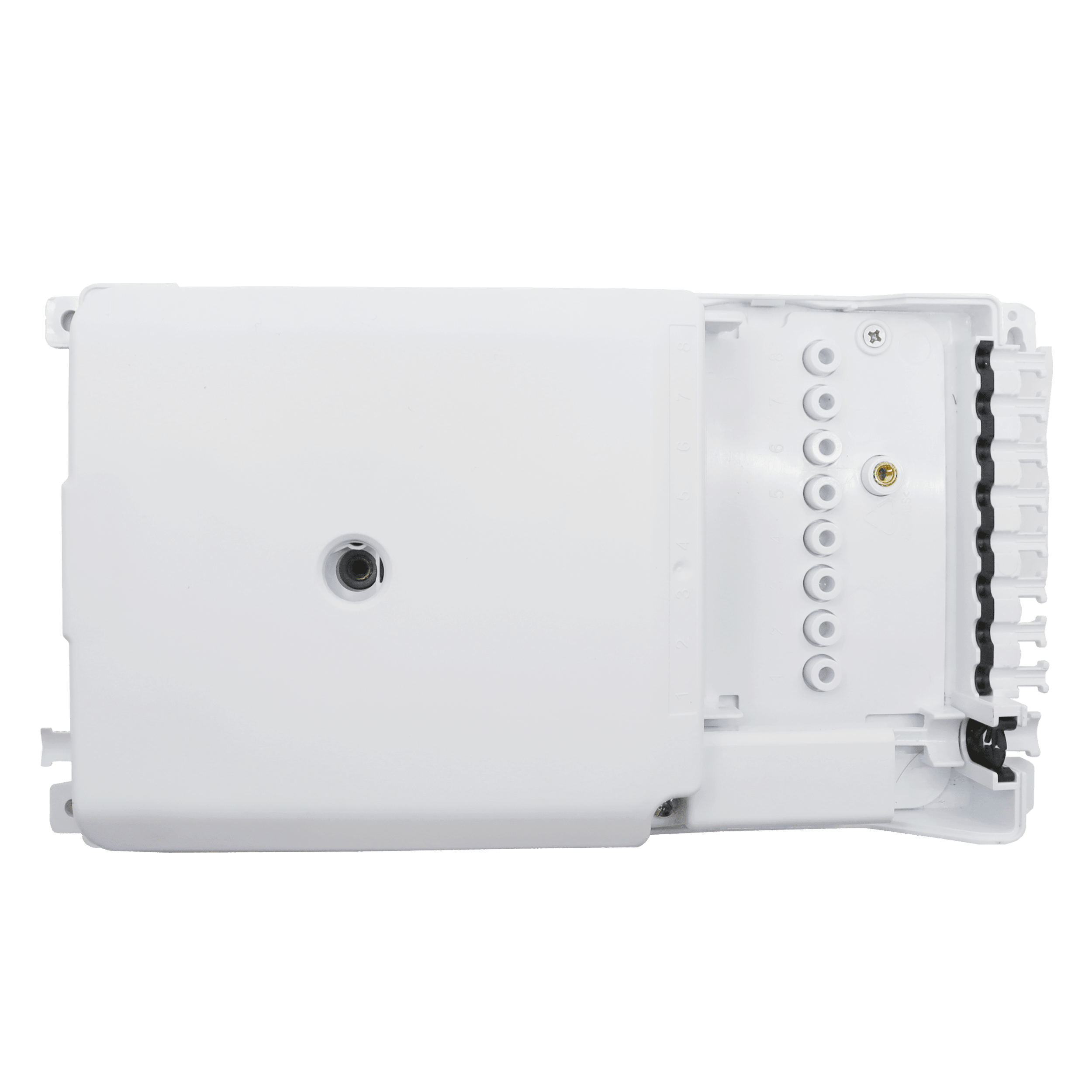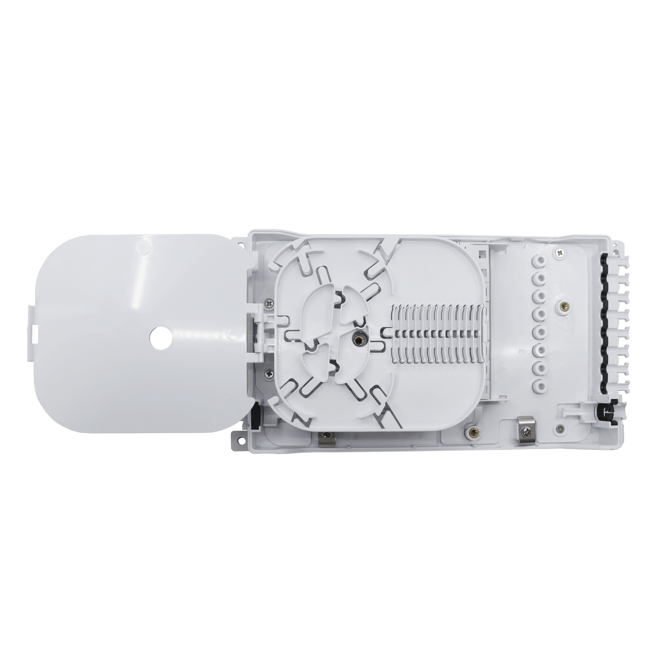 Contenitore secondario compatto di fibra ottica Fino a 16 fibre. Progettato per funzionare come elemento di passaggio e derivazione dei cavi di fibra ottica. Il loro normale utilizzo è per i progetti FTTH all'interno degli edifici (solitamente si installa nel contenitore secondario). Può contenere al suo interno un totale di 16 fibre, tramite 8 cavi da 2 fibre ciascuno. Consente di connettere fino a 8 fibre con connettori SC o 16 fibre con connettori LC. Inoltre, ha la capacità di contenere 20 fusioni grazie ai due vassoi da 12 e 8 fusioni ciascuno. . Materiale robusto grazie alla costruzione in plastica ABS. Ingresso/uscita del cavo multifibra della canalizzazione principale attraverso i fori laterali. Facile installazione e protezione delle giunzioni grazie ai 2 vaschette indipendenti e incernierati coperti da un coperchio. Incorpora 8 supporti per adattatori. Le manipolazioni esterne sono rese difficili grazie alla chiusura a vite inclusa nella porta. Protezione contro le particelle di polvere e gli spruzzi di pioggia grazie al grado di tenuta IP53. Protezione adatta alle installazioni esposte agli urti grazie alla classificazione di resistenza agli urti IK08. Bulloni di ancoraggio a parete inclusa e 8 guainas termorestringente per le giunzioni in fibra ottica. Dimensioni (L x A x P): 235 mm x 125 mm x 50 mm. Colore bianco.
