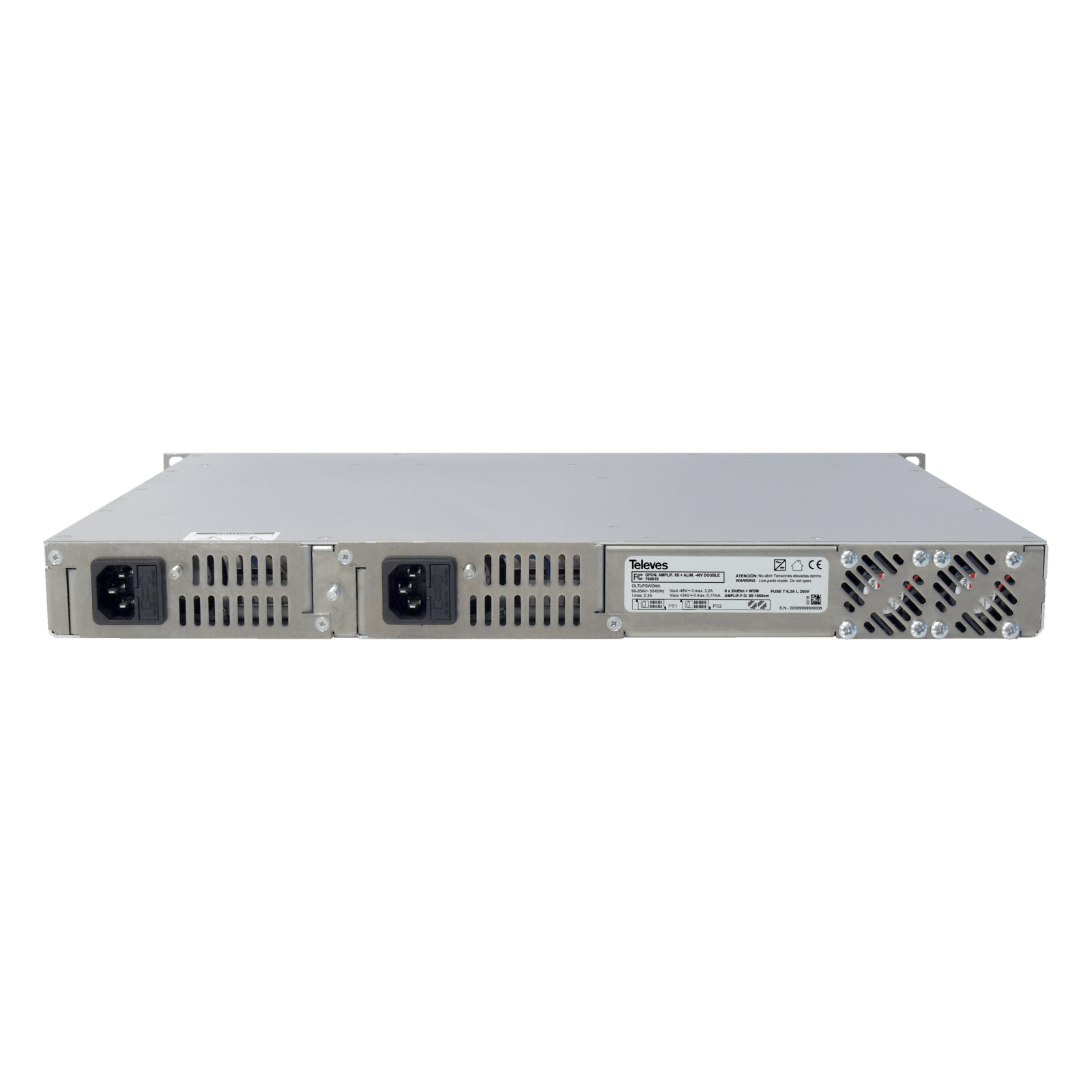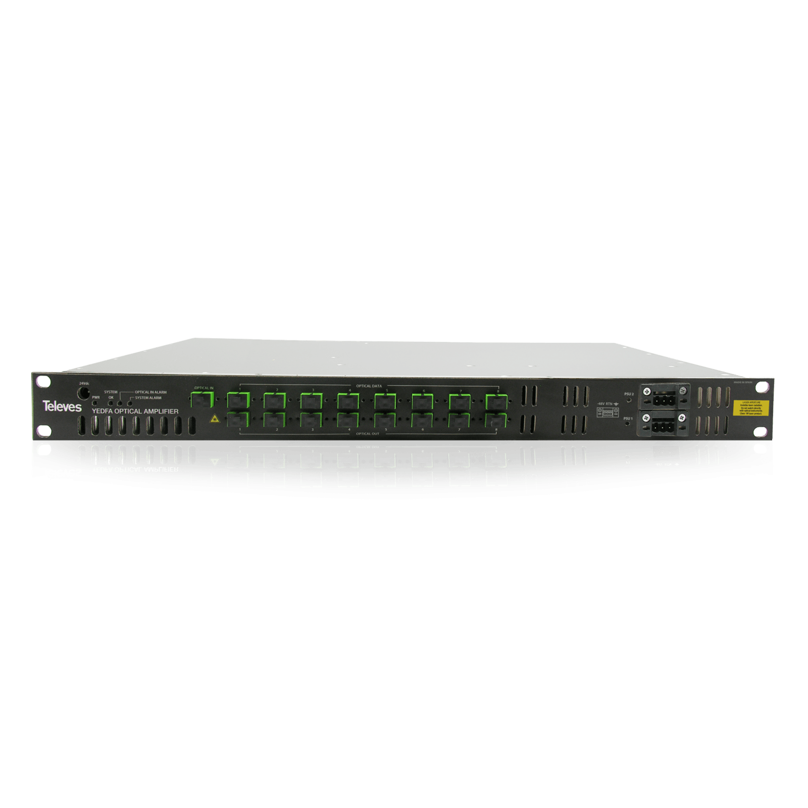 TELEVES - Fibredat Amplificatore ottico YEDFA a 8 uscite con WDM, 1U rack 19'' 1550nm, Po 20dBm e Alimentazione 2X-48V.