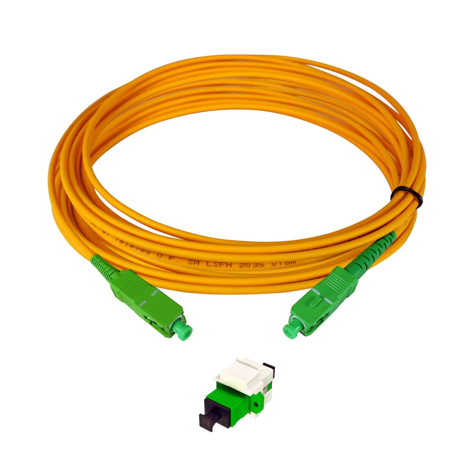 Kit prese F.O. con keystone, adattatore e bretelle preconnettorizzate SC/APC. Kit completo per l'installazione di una presa in fibra ottica connettorizzata. Il modulo keystone consente l'installazione di un adattatore in fibra ottica femmina ''SC/APC'' in una cover per presa di tipo RJ45. Il modulo, insieme all'adattatore, costituisce un'uscita terminale in fibra ottica. Include anche una bretella in fibra ottica monomodale preconnettorizzata con connettori ''SC/APC'', per fornire il segnale dall'UAP ottico alla presa. Questa bretella è appositamente progettata con un connettore più corto a una delle estremità, evitando così aumenti di attenuazioni nel segnale a causa di curve eccessive. il connettore corto facilita lo scorrimento della brettella attraverso i condotti, riduce lo spazio necessario per il collegamento e il raggio di curvatura è meno impegnativo. Lunghezza: 15 m.. Modulo Keystone di dimensioni standard, che lo rendono compatibile con molte cover RJ45. Semplice Installazione: il modulo Keystone viene inserito nel coperchio premendo fino a quando le linguette del modulo si agganciano. L'adattatore viene installato sul modulo Keystone con la stessa procedura. Design della bretella riadattato per un''installazione alla presa: il suo connettore più corto ne facilita il passaggio nel tubo fino alla presa. F.O. adattatore con otturatore interno: blocca automaticamente il passaggio della luce quando il connettore viene rimosso, garantendo la protezione degli occhi. Perdite di inserzione molto basse. Bretella con Euroclasse Dca-s2,d2,a1. Connettore corto ad un'estremità: consente un raggio di curvatura più piccolo e un migliore utilizzo dello spazio nell'area di connessione. Connettori ''SC/APC''. Modulo Keystone costruito in plastica PVC di colore bianco. Bretella di fibra monomodale ITU-T G657A2 e guaina esterna in LSFH di colore arancione. Bretella disponibile in diverse lunghezze.