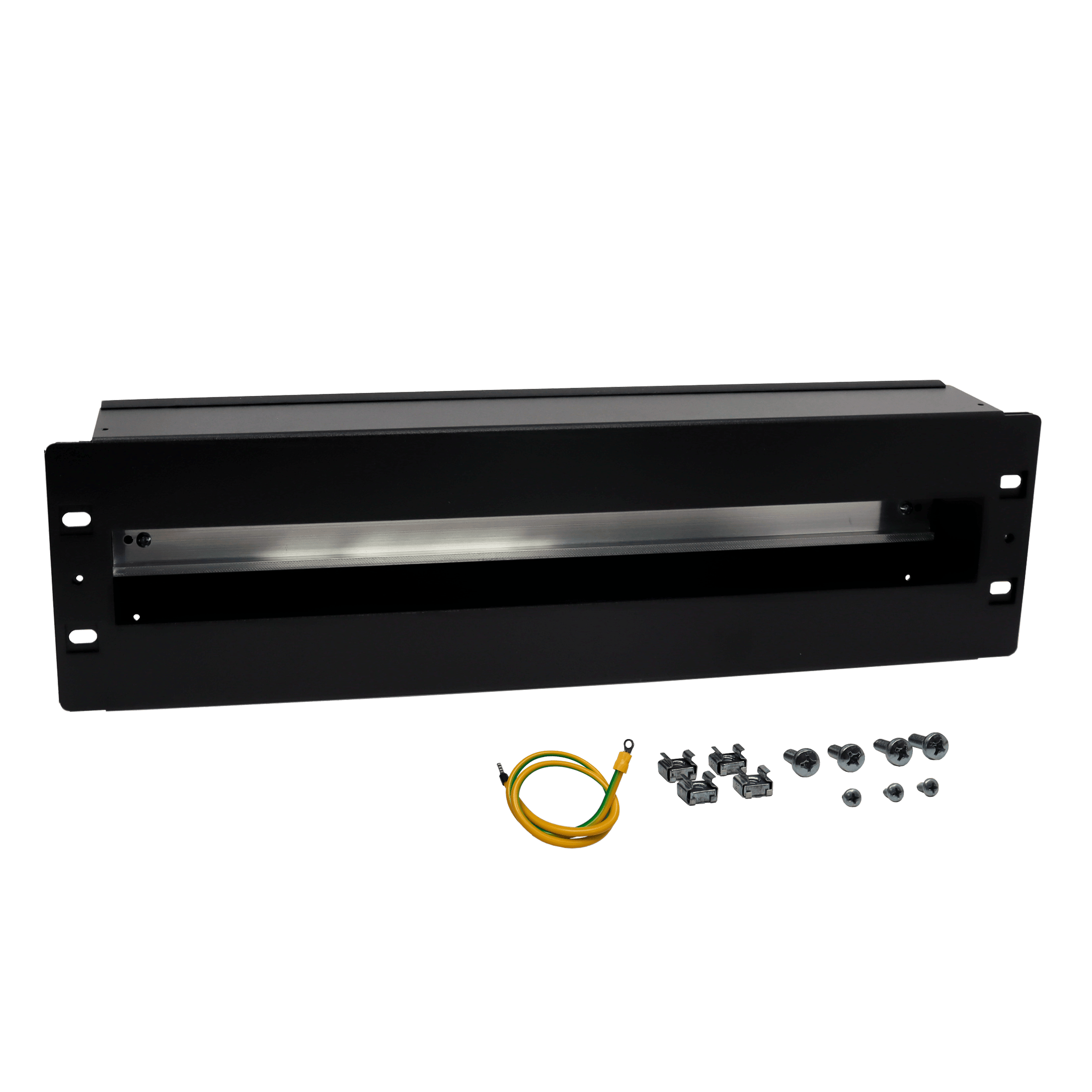 Pannello guida DIN per rack 19''. 3U, fino a 24 posizioni unipolari. Progettato per l'installazione di dispositivi compatibili con guida DIN standard. Fornisce una posizione comune per tutte le periferiche che dispongono di questo sistema di fissaggio standardizzato, facilitando così l'organizzazione nel rack. La sua principale applicazione è quella di alloggiare interruttori automatici e differenziali, normali o ripristinabili. Questi dispositivi aiutano a proteggere l'impianto da sovratensioni o dispersioni elettriche, chiudendo il circuito e deviando la corrente a terra. Il pannello DIN ha un cavo di terra, ancorato al telaio tramite una vite filettata, che garantisce la derivazione di corrente. Dispone di un coperchio asportabile per una facile manutenzione e un semplice montaggio dei dispositivi installati su guida DIN. Inoltre, include profili di protezione sui bordi del pannello per evitare danni o tagli ai cavi elettrici, riducendo il rischio di incidenti. . Resistente: costruito in acciaio 1,5mm di spessore. Gran facilità d'installazione ed utilizzo. Progettato per occupare 3U. Ha la capacità di ospitare fino a 24 moduli unipolari o 12 bipolari. Include 7 viti e 4 dadi a gabbia per la sua installazione al rack de 19''. Colore nero (RAL 9005).
