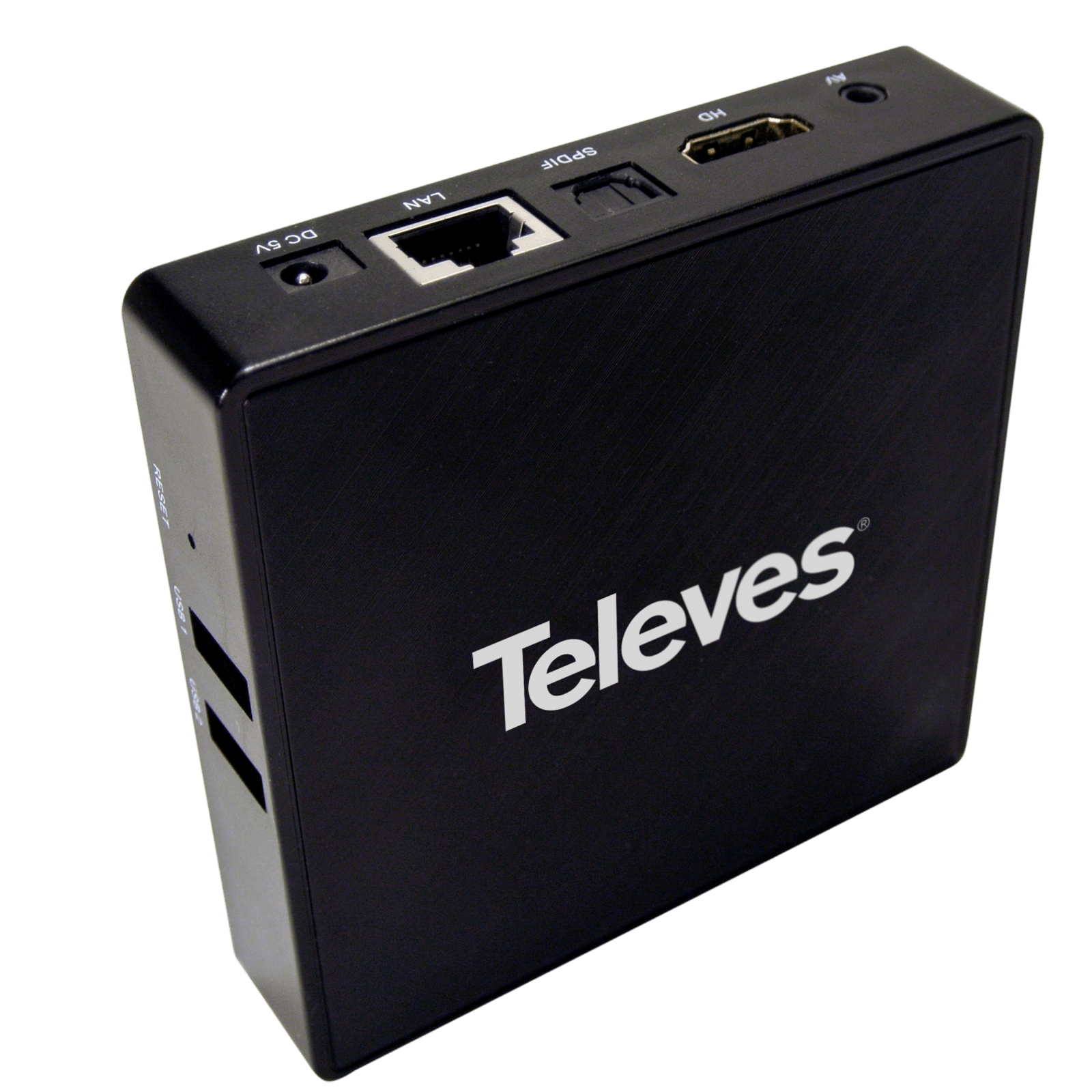 Player Arantia DS Nemesis V2 WiFi. Player Digital Signage con WiFi basato sul decoder Nemesis V2. Include una scheda di memoria microSD da 64 GB per l'archiviazione dei contenuti programmati tramite lo strumento di gestione Arantia DS. All'interno delle funzionalità di questo decoder ad alta definizione, è possibile trovare quanto segue: Supporto per IPTV e Digital Signage. Orientamento verticale o orizzontale dell'immagine. Funzionamento autonomo e meccanismo di sicurezza nella rete di accesso al sistema Arantia DS, che consente di continuare a riprodurre i contenuti programmati. Questo dispositivo include il primo anno di licenza al sistema Arantia DS per le configurazioni di sistema rispetto al server cloud Televes. Alimentatore con spina EU/UK/US incluso. . Consente di creare un modello pubblicitario redditizio, nonché di programmarlo in anticipo per la riproduzione in qualsiasi momento. Visualizza l'ultimo contenuto scaricato (programmato) durante i periodi di inattività della rete. Riproduce contenuti multimediali versatili, tra cui video, immagini, contenuti RSS in tempo reale.... Visualizzazione orizzontale/verticale. Piattaforma MPEG2 MPEG4-AVC/H264. Interfaccia utente avanzata tramite browser integrato. Interfaccia HDMI. 3 porte USB 2.0 ad alta velocità. 1 connessione OTG-USB. Interfaccia TV interattiva (ITV) ed estensore IR. Indicatore luminoso sul pannello frontale. Include antenna WiFi 2,4/5 GHz. Bluetooth integrato. Configurazione e monitoraggio remoti. Set software basati su standard aperti. Software flessibile basato su codice sorgente aperto. LED di standby.