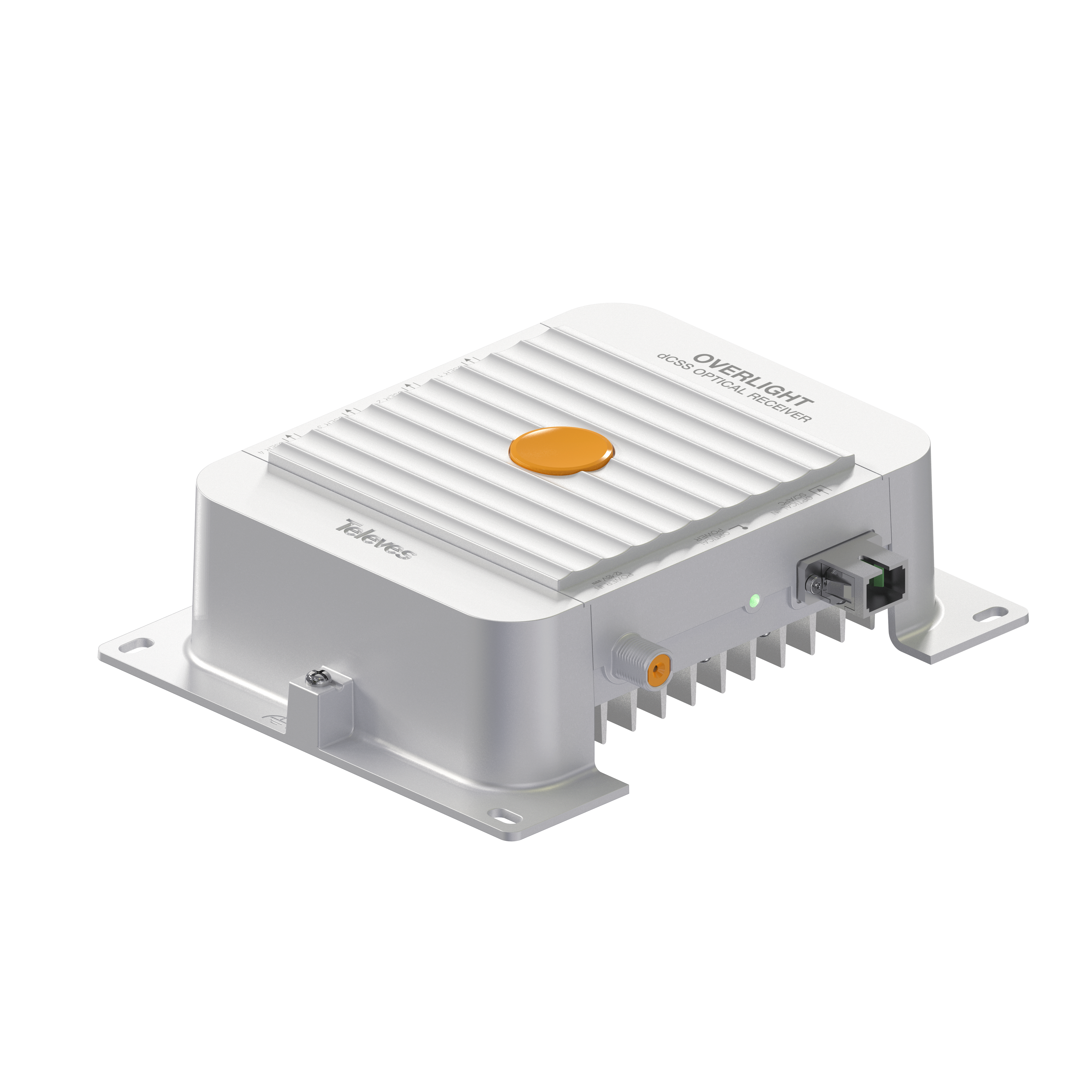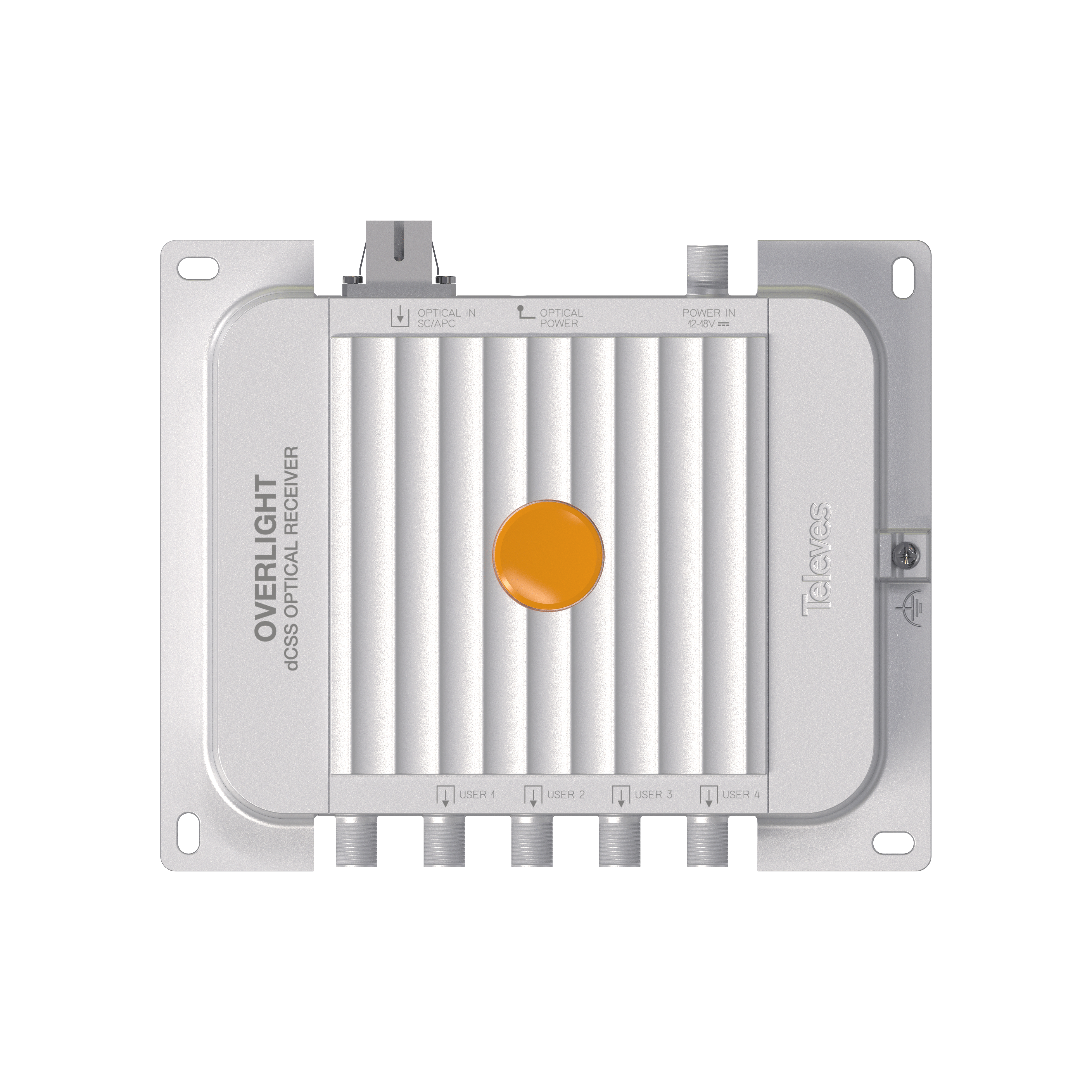 Ricevitore ottico dCSS Overlight con 4 uscite dCSS/Legacy+Terr. Per applicazioni SKY, FM/DAB/UHF/SAT. Questo ricevitore ottico completo Wideband satellitare e terrestre cattura il segnale ottico TV su un'unica fibra (1200...1600nm) e ripristina i segnali TV terrestri e satellitari originali, fornendo 4 uscite RF dCSS/Legacy + Terr. Grazie alla sua elettronica ottimizzata e alle basse perdite, consente di ridurre il numero di amplificatori necessari e semplifica l'implementazione nella progettazione di installazioni condominiali, preservando la qualità del segnale durante tutto il processo. Inoltre è perfettamente indicato per l'utilizzo in impianti GPON, e si adatta perfettamente alle applicazioni SKY. Questo dispositivo fa parte del sistema Overlight, che distribuisce segnali satellitari e terrestri a più utenti attraverso un'unica fibra ottica. . Dimensioni molto leggeri e compatte. Compatibile con le distribuzioni GPON. Supporta le modalità SKY. Basse perdite. Elettronica ottimizzata. Design, qualità e produzione europei al 100%. Connettore ottico SC/APC. Connettori RF di tipo F. Telaio in Zamak ad alta schermatura. Montaggio a parete. Include alimentatore esterno.