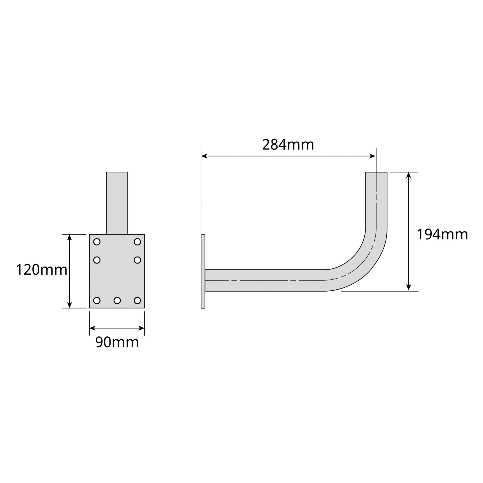 TELEVES - Supporto a L parete 284x194mm, Ø35mm in zinco con RPR.