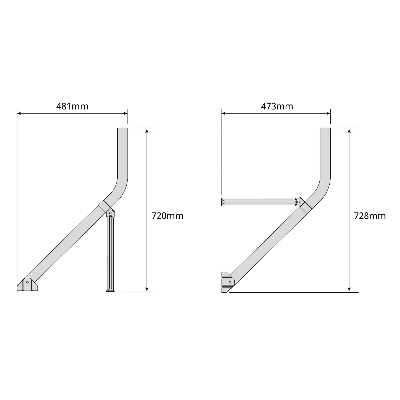 Supporto ''Y'' 728x473mm / 720x481mm Galvanizzato. Supporto tipo ''Y'' con due posizioni avvitabili, per l 'installazione di antenne a parete con separazione di 473mm, o al suolo con un'altezza di 720mm. Il tubo ha Ø 45mm e spessore 1,5mm. Costruito in acciaio galvanizzato. . Il tubo non necessita di un tappo protettivo, in quanto la struttura aperta del supporto garantisce l'evacuazione dell'acqua.
