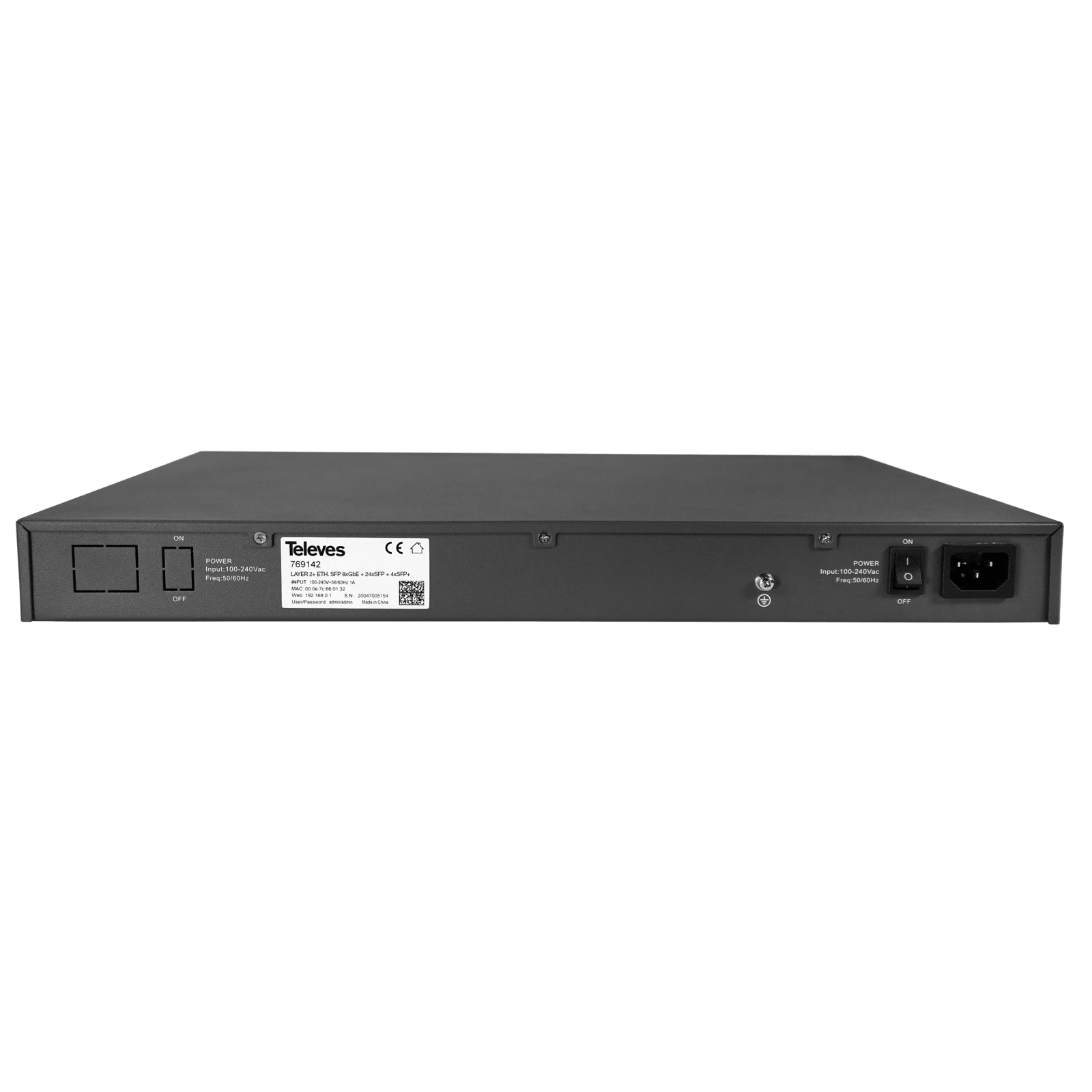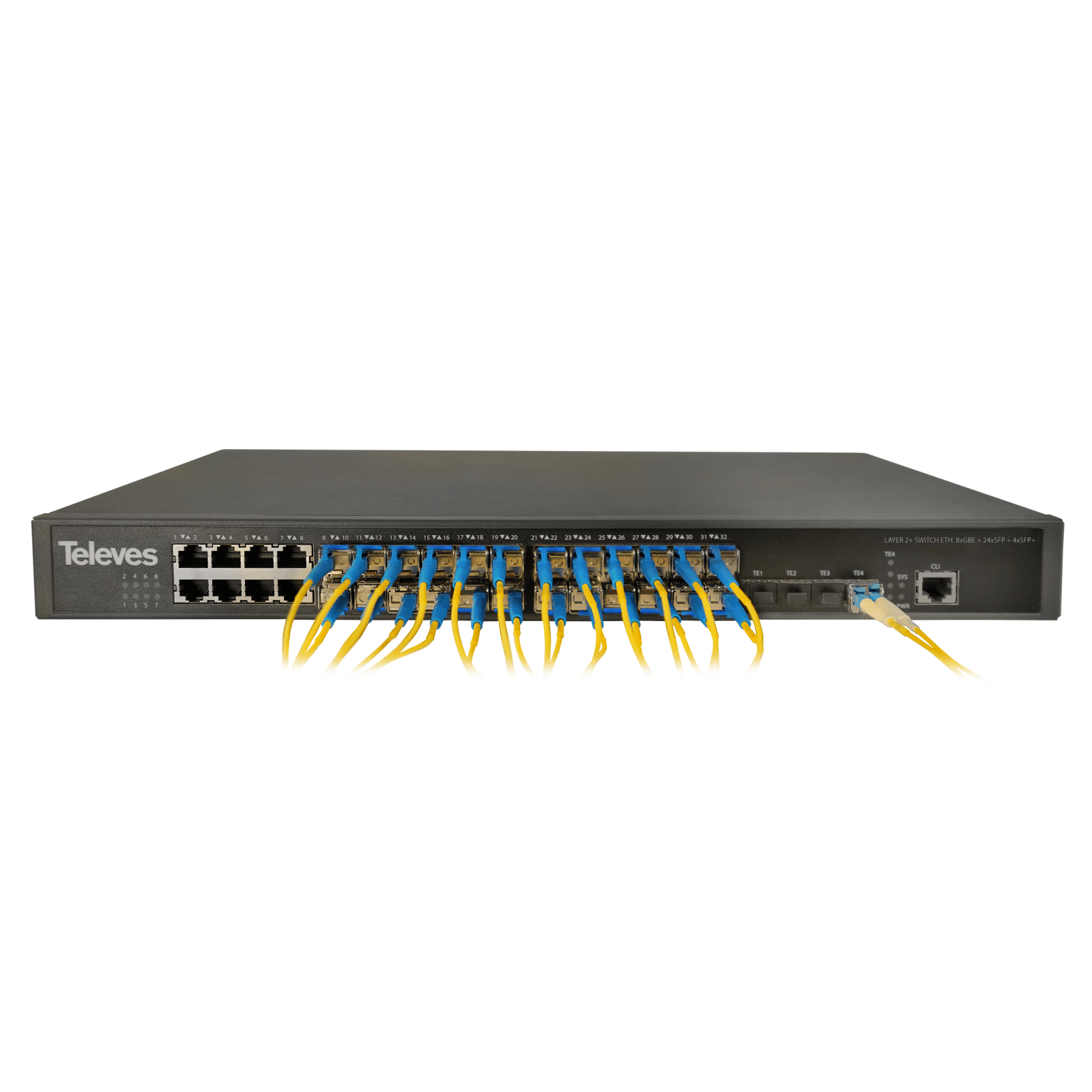 TELEVES - Switch Ethernet Layer 2+ con 8 porte GbE, 24 porte SFP da 1Gbps e 4 porte SFP+ da 10Gbps.