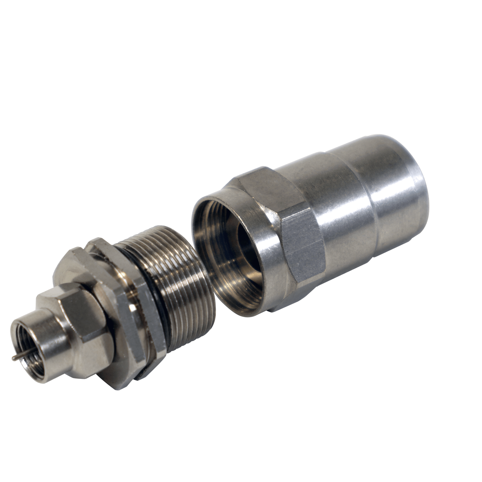 Connettore da montare ''F'' Cavo da interramento 1/2''. Connettore F con sistema di montaggio di due pezzi. Il connettore si smonta per inserire il cavo sul primo pezzo, e fissando ed avvitando il secondo pezzo. Viene fornito in scatola singola. . Connettore smontabile e riutilizzabile. Formato dritto. Installazione senza l'utilizzo di utensili.