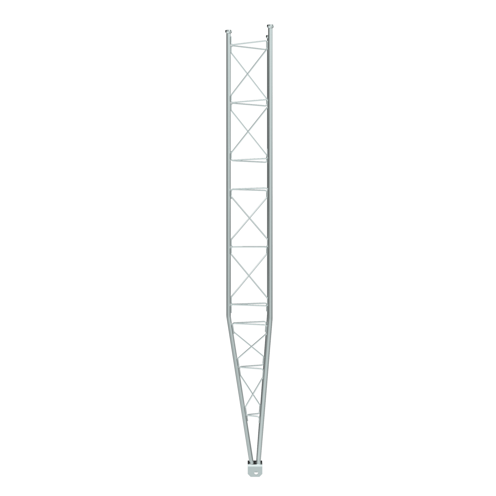 Sezione inferiore basculante, galvanizzato a caldo Traliccio 360. Sezione inferiore di 3m per la formazione di un traliccio della serie 360. Esssendo una sezione basculante, richiede l'installazione dei tiranti. . Sistema di ancoraggio mediante raccordi. Saldatura robotizzata. Altezza massima del traliccio 360: 57m (secondo le condizioni di calcolo). Il trattamento galvanizzato a caldo della superficie offre una maggiore durata in condizioni avverse di corrosione. Finitura grigio.