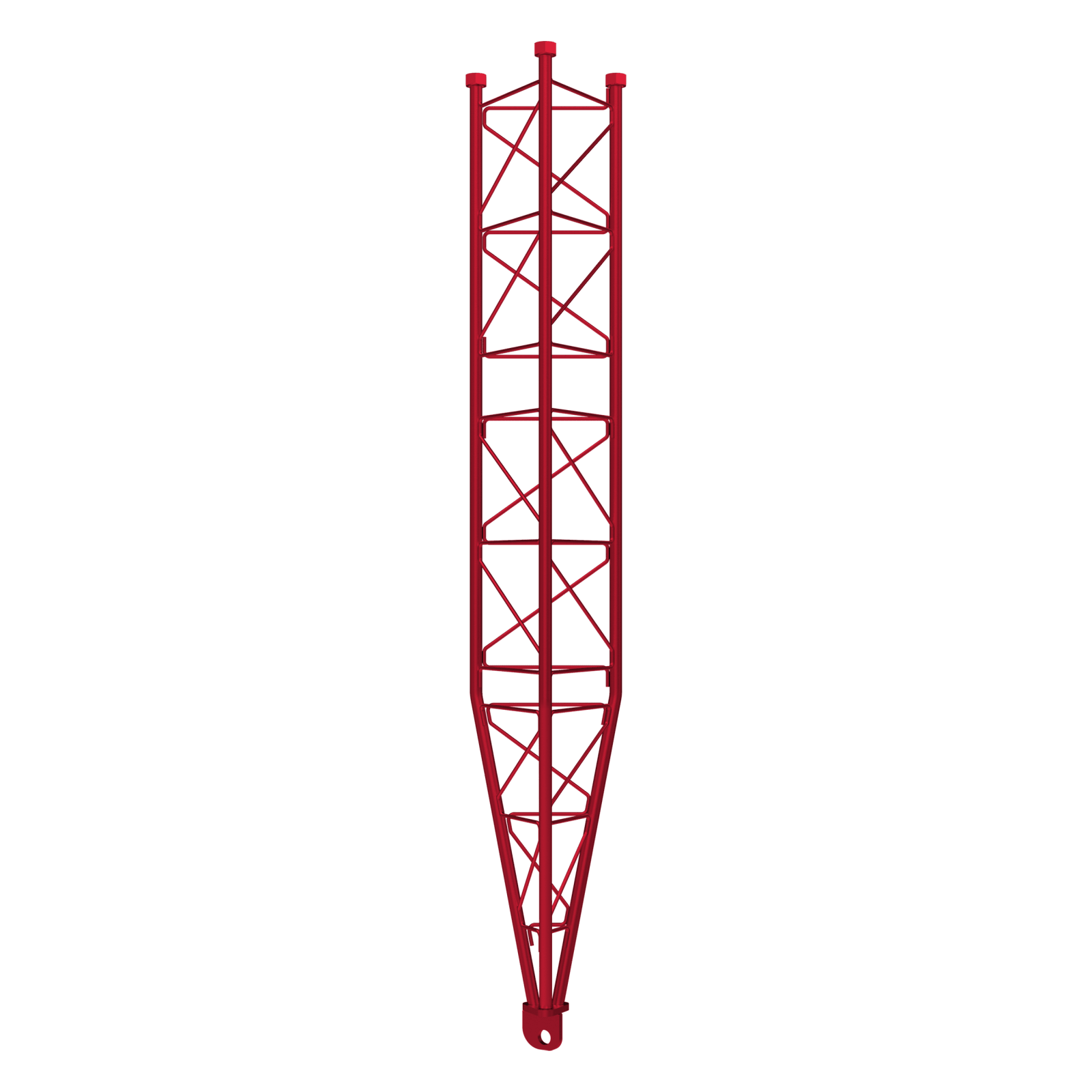 Sezione inferiore basculante, galvanizzato a caldo + Pittura Traliccio 450. Sezione inferiore di 3m per la formazione di un traliccio della serie 450. La sezione è dipinta in colore rosso (RAL 3020). Esssendo un sezione basculante, richiede l'installazione dei tiranti. . Sistema de ancoraggios mediante raccordi. Saldatura robotizzata. Altezza massima del traliccio 450: 90m (secondo le condizioni di calcolo). Il Trattamento galvanizzato a caldo della superficie offre una maggiore durata in condizioni avverse di corrosione. Dipinto, mediante laccatura al forno con polvere elettrostatica di poliestere.