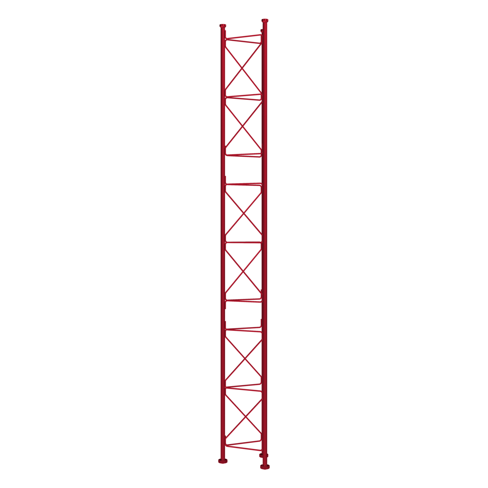 Sezione intermedia, Zinco + Pittura Traliccio 360. Sezione intermedia di 3m per la formazione di un traliccio della serie 360. Colore: Rosso.. Sistema di ancoraggio mediante raccordi. Saldatura robotizzata. Altezza massima del traliccio 360: 57m (secondo le condizioni di calcolo). Trattamento di Zincato + pittura di colore: laccato al forno con polvere elettrostatica di poliestere.