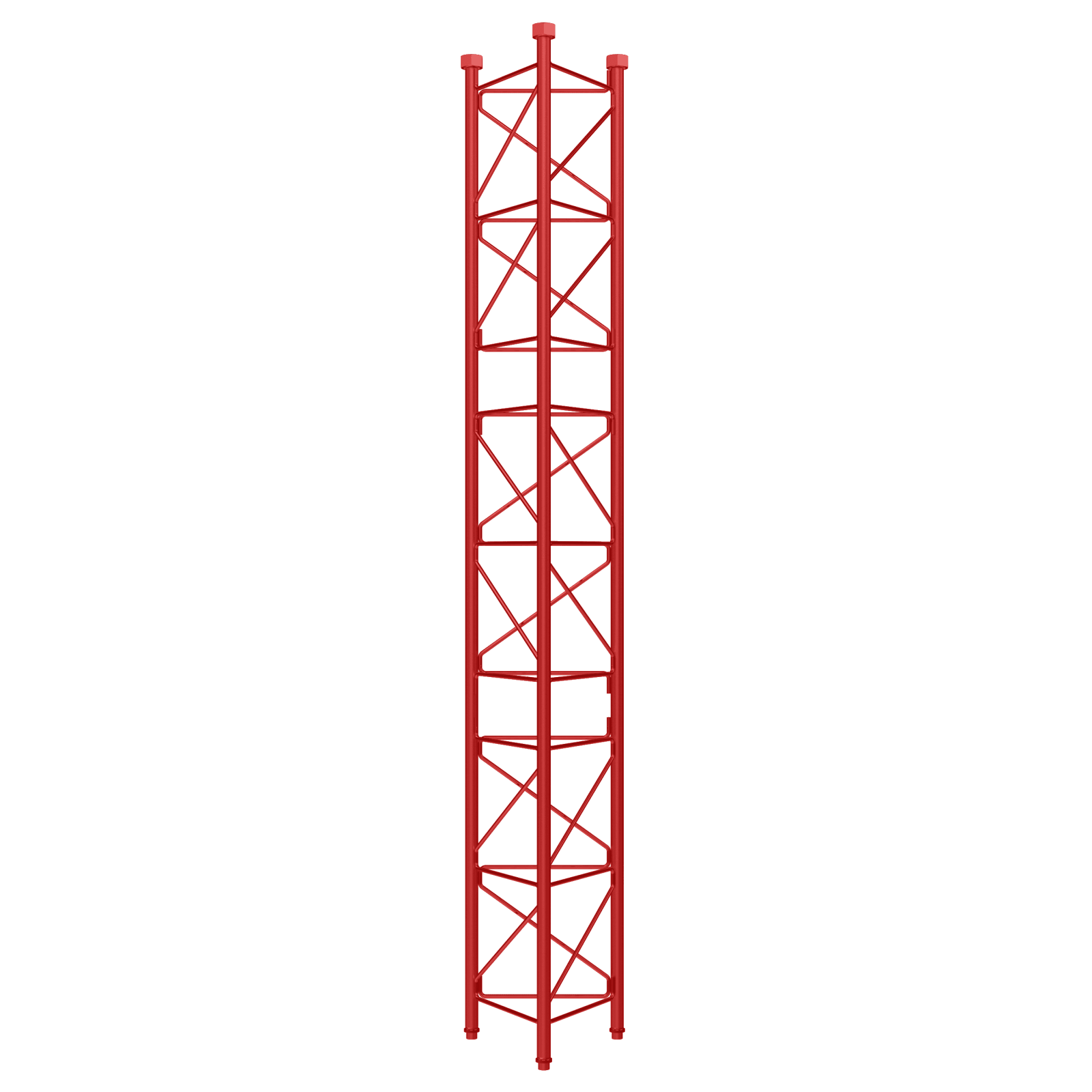 Sezione intermedia, Zinco + Pittura Traliccio 450. Sezione intermedia di 3m per la formazione di un traliccio della serie 450. Colore: Rosso.. Sistema de ancoraggios mediante raccordi. Saldatura robotizzata. Altezza massima del traliccio 450: 90m (secondo le condizioni di calcolo). Trattamento di Zincato + pittura di colore: laccato al forno con polvere elettrostatica di poliestere.