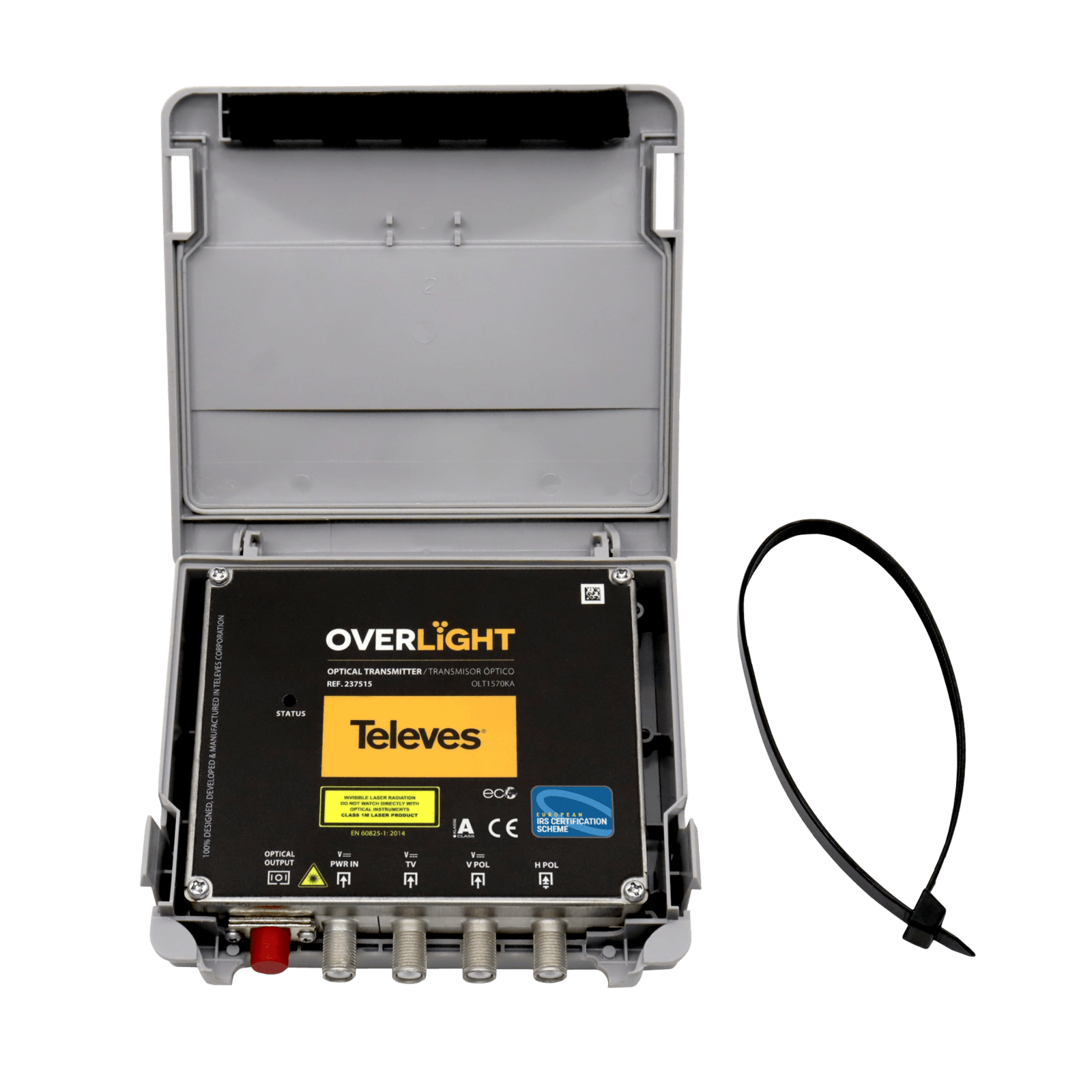 TELEVES - Trasmettitore ottico Overlight CWDM per uso esterno, compatibile con DAB/UHF/SAT, lunghezza d'onda 1570 nm, potenza di 9 dBm.