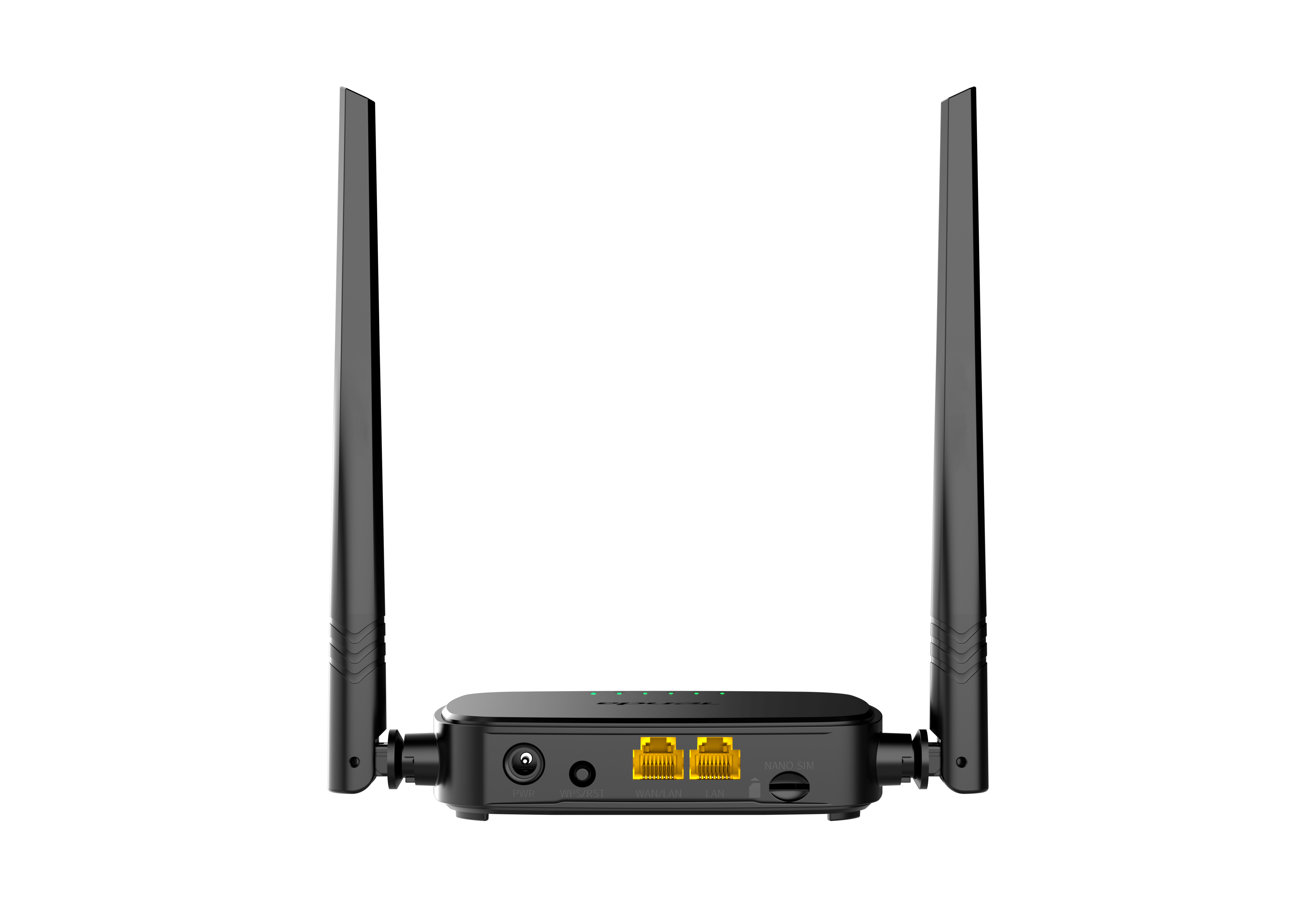 Router Wireless N300 cat.4, fornisce la connessione Wireless 4G LTE e LAN fino a 32 utenti contemporaneamente. Plug&Play: basta collegare la scheda SIM (supporta NanoSim) di un operatore mobile, per avere la connessione Wi-Fi. Backup automatico linea 4G/WAN Supporta due modalit° di lavoro: router 4G, ripetitore universale Supporta funzione SMS Standard IEEE 802.11/b/n/g Frequenza: 2,4GHz Supporta crittografia: WPA/WPA2 2 porte LAN RJ45 Fast Ethernet 10/100Mbps 2 antenne esterne omnidirezionali Alimentazione: 9Vdc, 0,6A Temperatura di lavoro: 0°C +40°C Per ulteriori specifiche, consultare la scheda tecnica