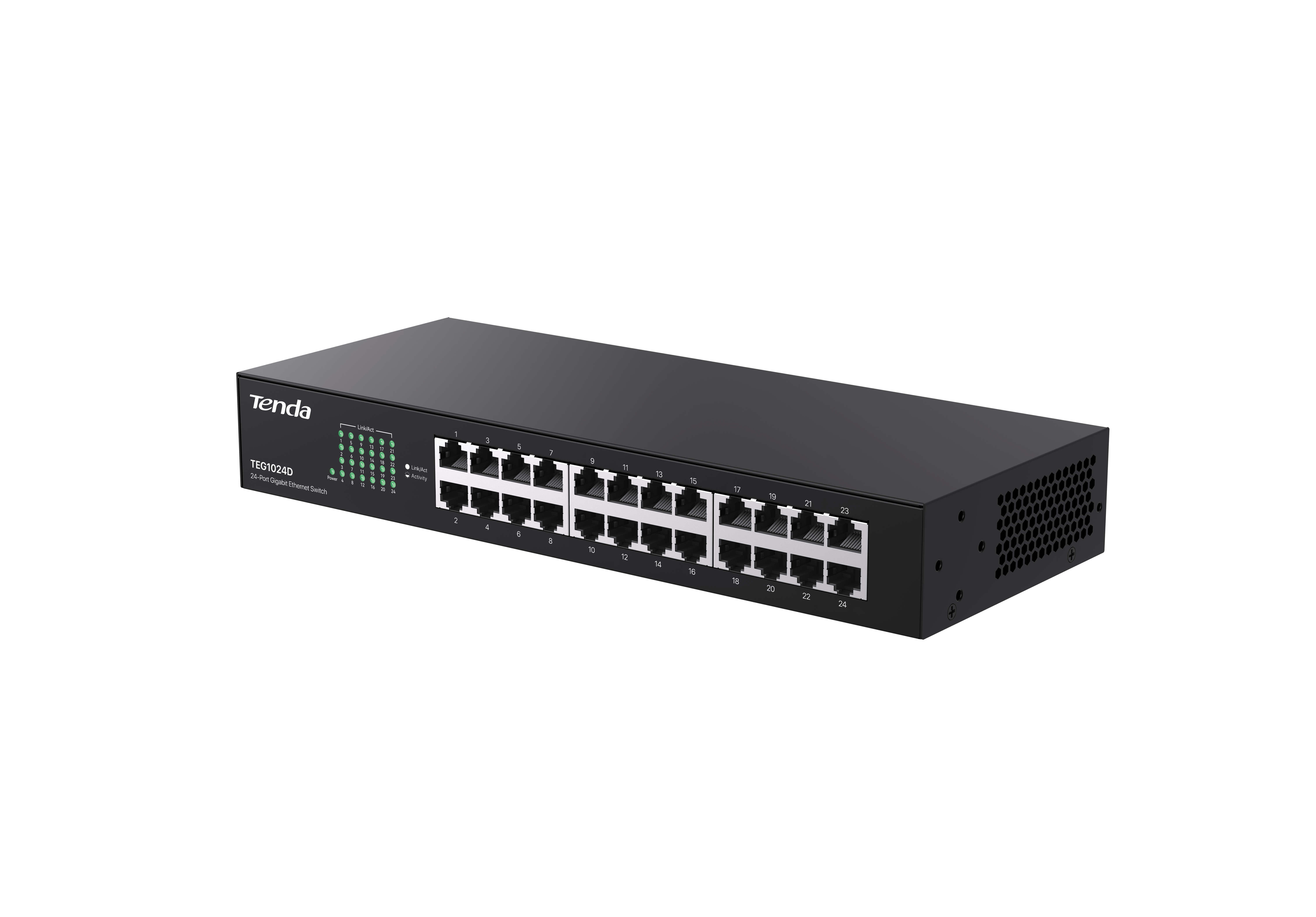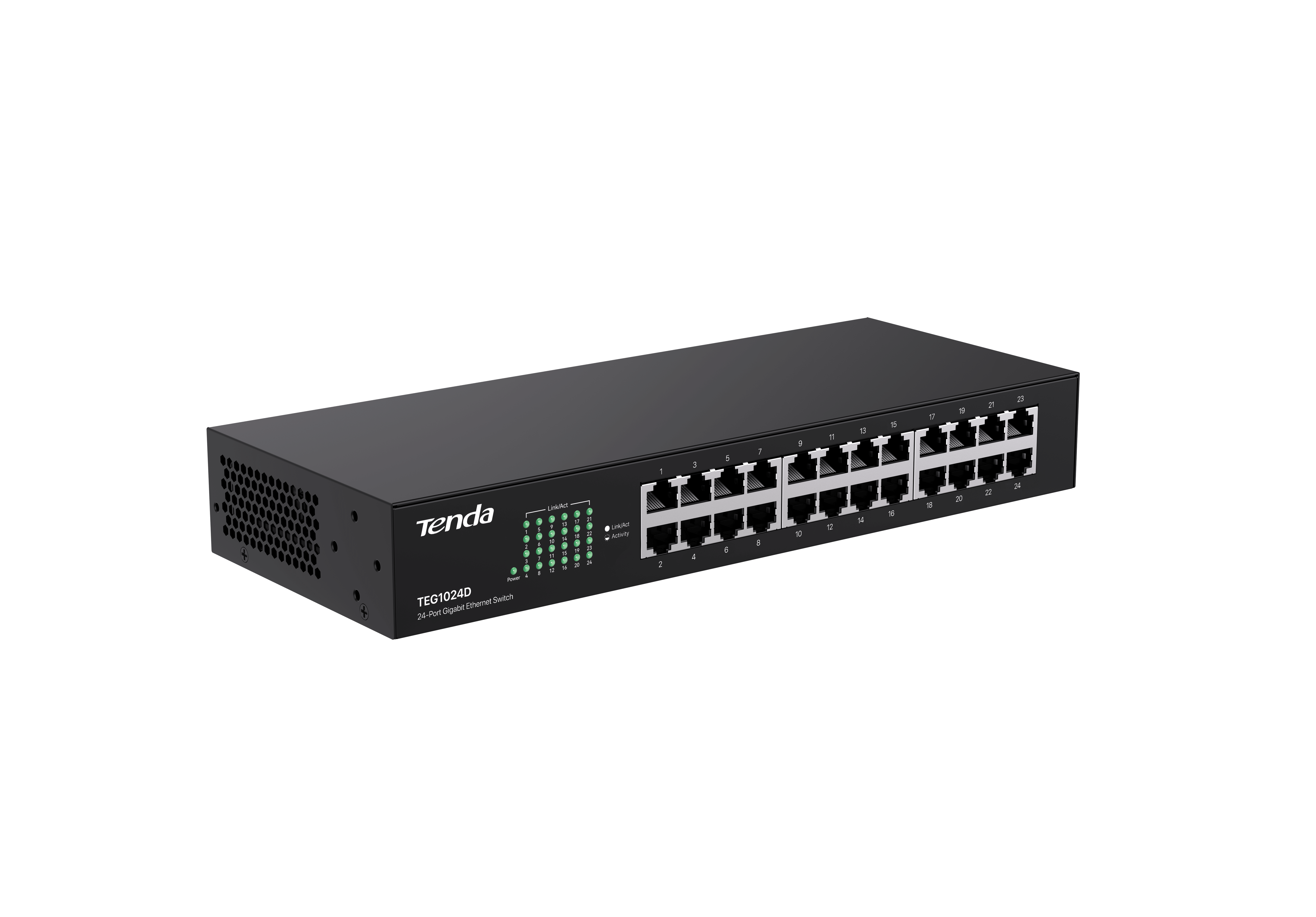 TENDA - Switch non gestito 24 porte Gigabit, matal case, rack mount, 48Gbps switching capacity, 6kV protezione fulmini, plug&play, auto MDI/MDIX. 429421600