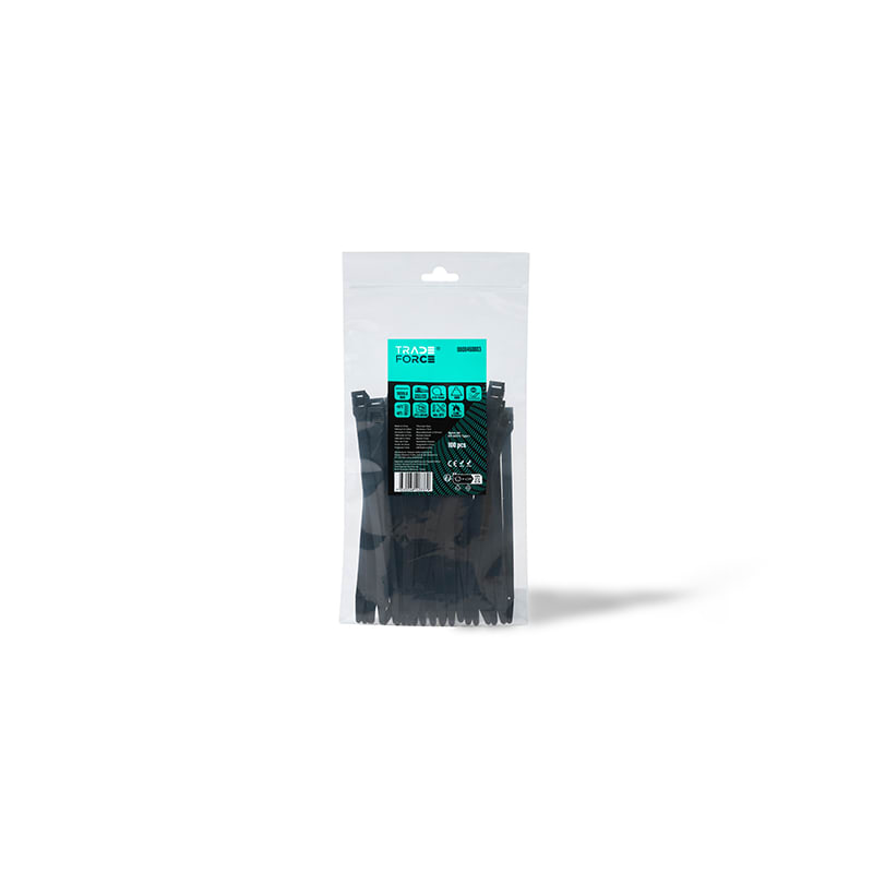 TRADEFORCE - Fascetta a doppia chiusura, 180*8.6mm, nero, interno/esterno, 100 pz, Poliammide 66 0000460083