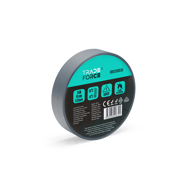 TRADEFORCE - Nastro isolante grigio 19 x 0.15 mm 25 metri 10-90 gradi 0001280030