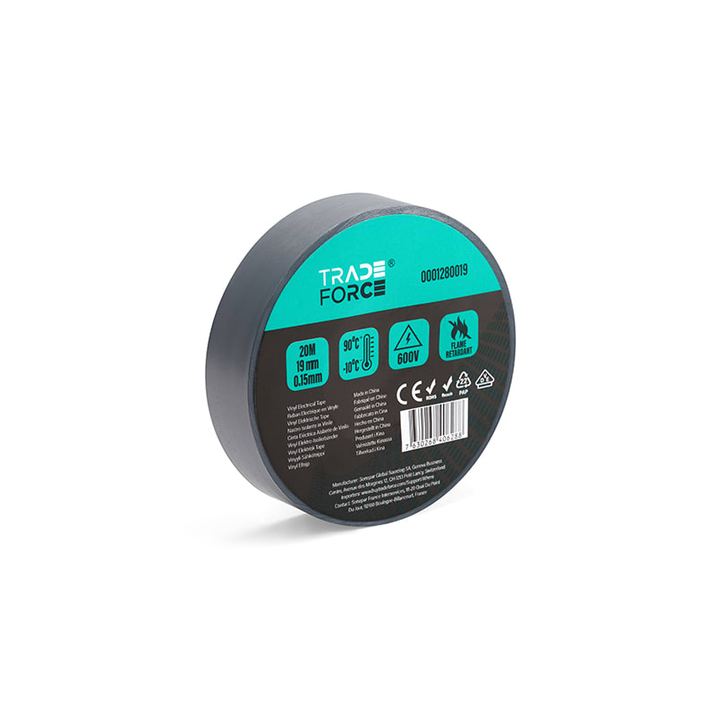 TRADEFORCE - Nastro isolante in PVC, 20m, 19mm*0.15mm, grigio, ritardante di fiamma, VDE, 600V, -10°C-90°C 0001280019